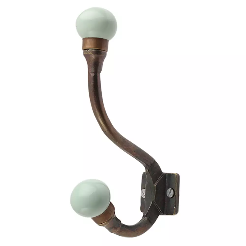 Sage Green Ceramic Iron Hook-Ehg-91. When Put on Wall or Cabinet It is An Art in Itself. This Hook is Strong Enough to Hold Your Cloths, Keys, Tea Cups, Coffee Mugs, Hand Towels Etc.