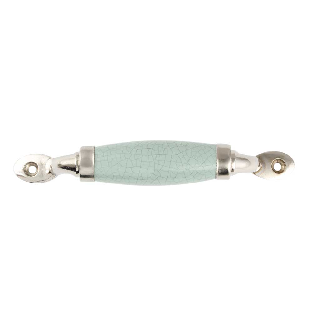 Sage Green Crackle Small Ceramic Silver Door Handles. Ideal for Drawer, Dresser, Cabinet, Wardrobe, Cupboard and Almirah.