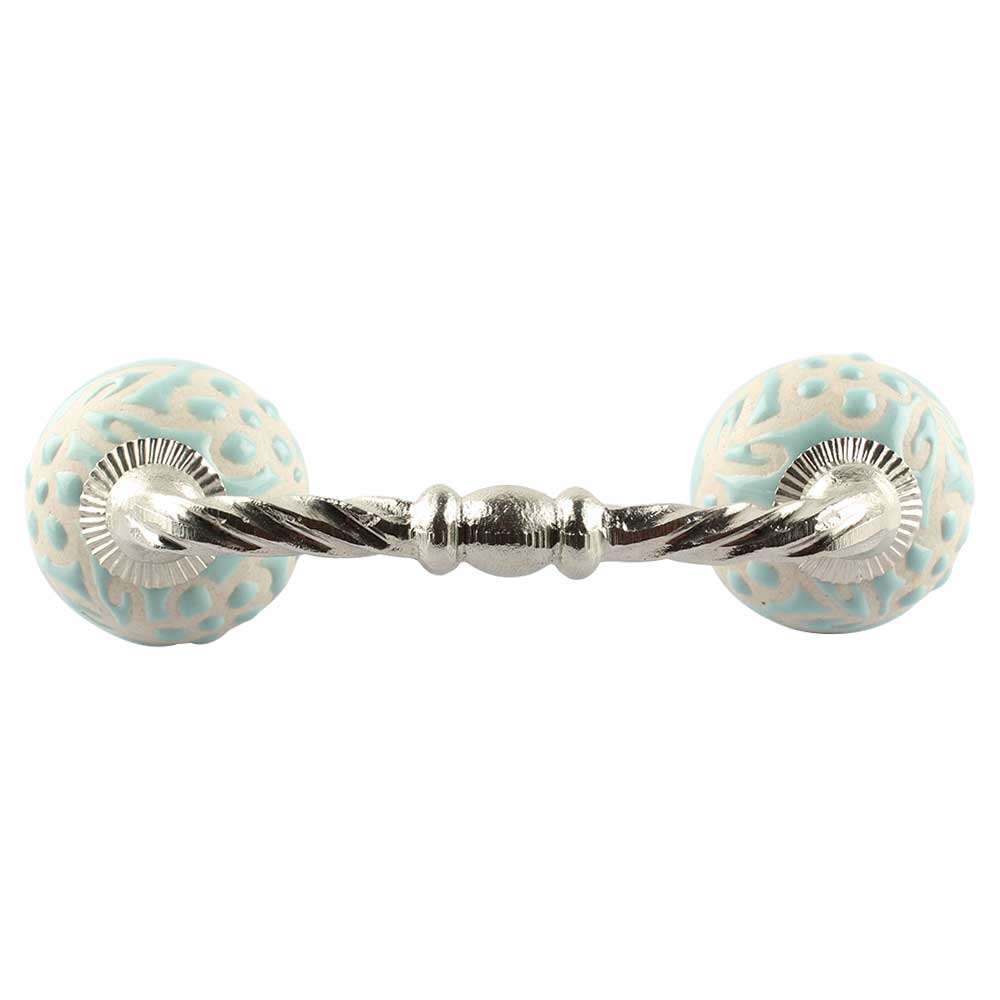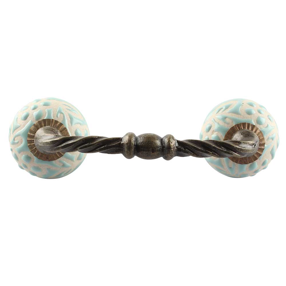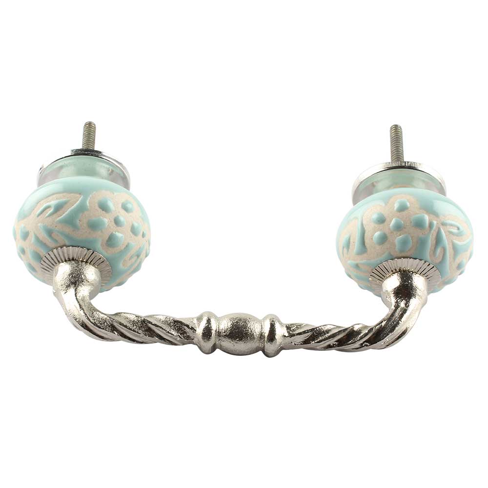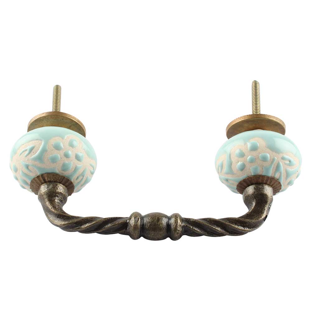 Sage Green Etched Ceramic Cut Bridge Handles. Ideal for Drawer, Dresser, Cabinet, Wardrobe, Cupboard and Almirah etc.
