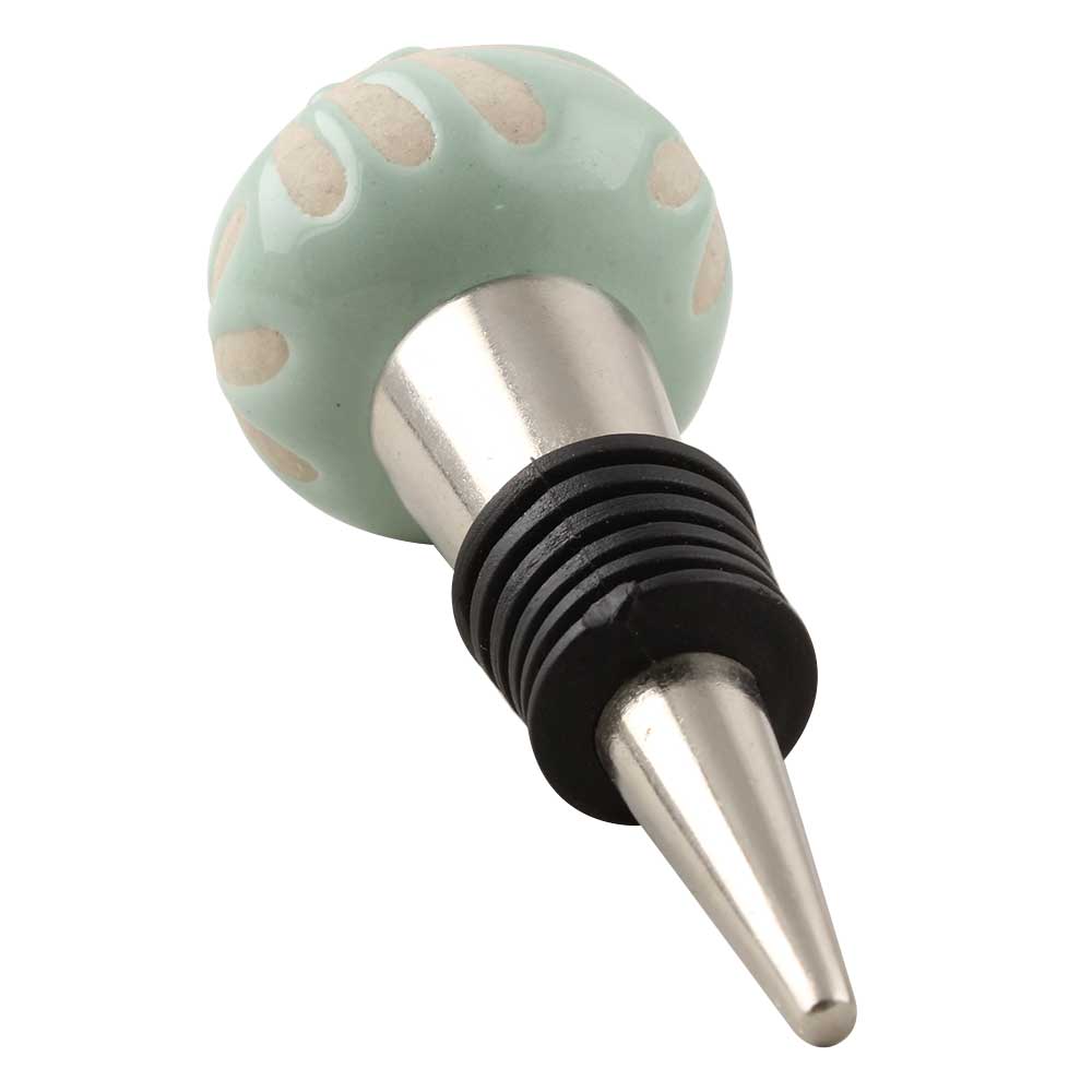 Sage Green Etched Ceramic Floral Wine Stopper. Zinc Alloy Wine Bottle Stopper with Attractive Jute Bag Packaging.