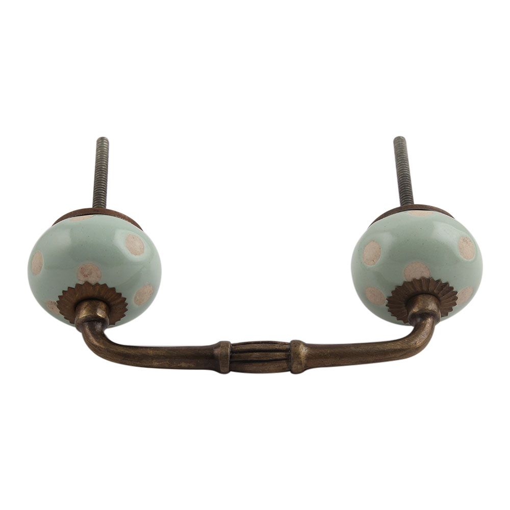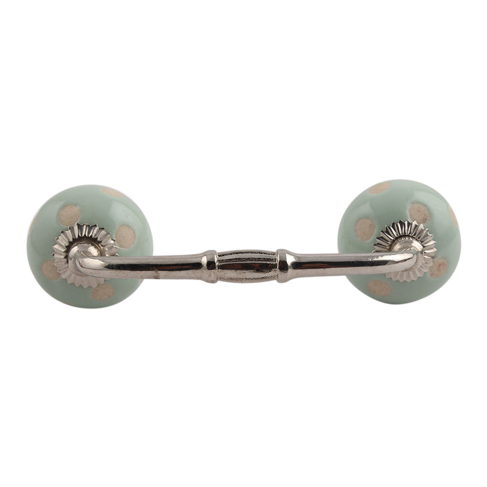 Sage Green Etched Dot Ceramic Bridge Handle. Ideal for Drawer, Dresser, Cabinet, Wardrobe, Cupboard and Almirah.