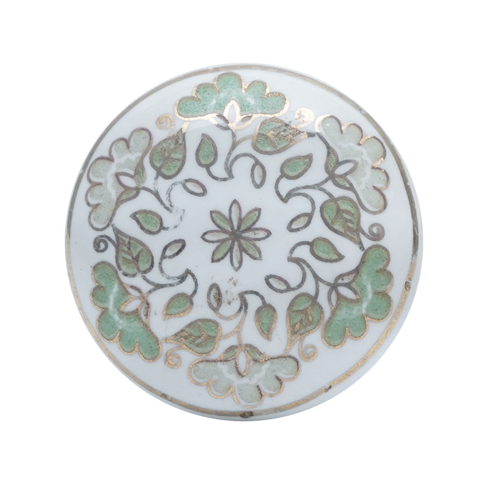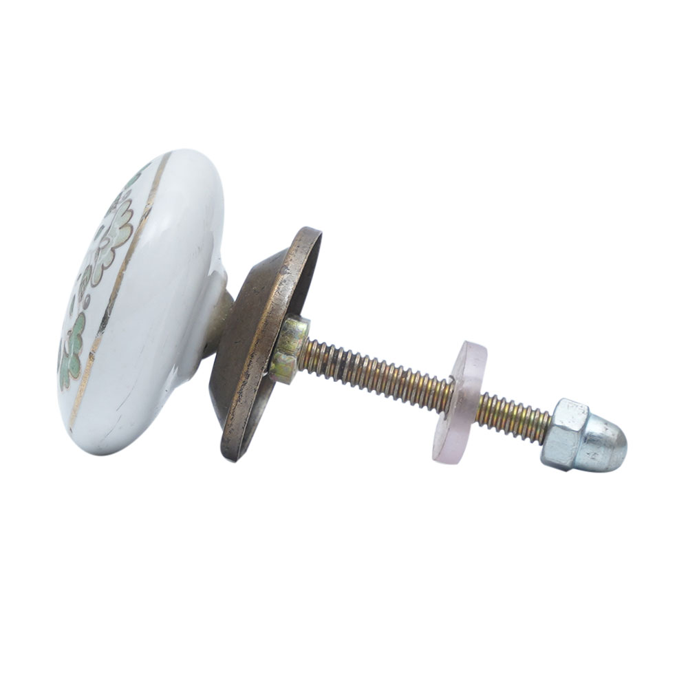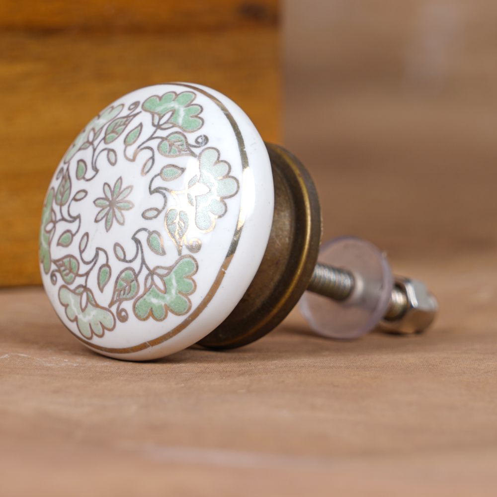 Buy a white ceramic knob online which is a beautiful and elegant piece of hardware that will add a touch of sophistication to any furniture. Handmade by skilled artisans from India, this knob is made of ceramic and features engravings of floral in golden colour and green fillings. It is perfect for use as a knob for cabinet, furniture, cupboard, drawer, dresser or wardrobe. The intricate floral engravings on this knob make it a unique addition to any furniture piece. Its green fillings add a splash of colour and freshness to its overall design. It is perfect for those who are looking for a beautiful and stylish addition to their white ceramic knobs or ceramic knobs collection. This knob can also be used as cupboard knobs and handles to give your furniture a new look. This beautiful ceramic knob can be gifted to your near and dear ones on special or festive occasions occasions.