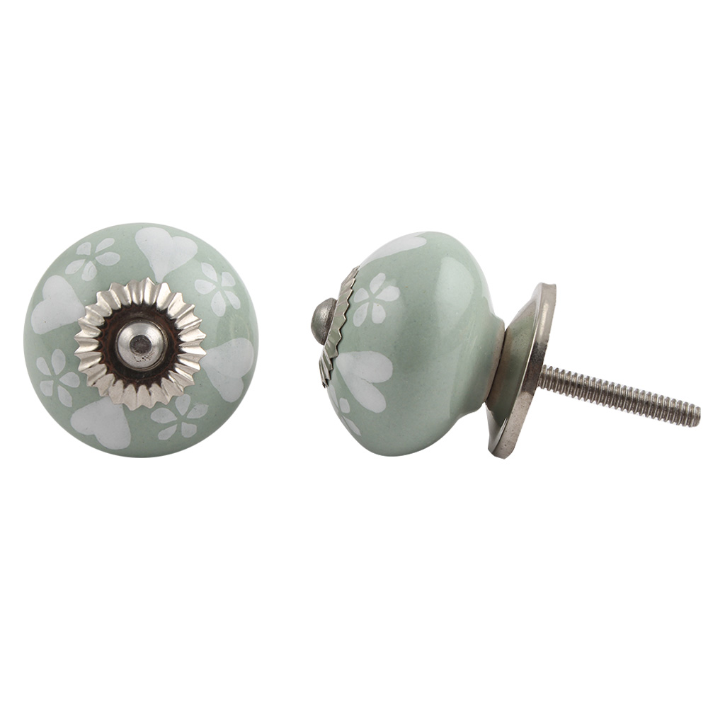 Sage Green Heart Ceramic Knob. Ideal for kitchen cabinets, kitchen drawers, dining room, bed room, chest drawers, dressing tables, almirah