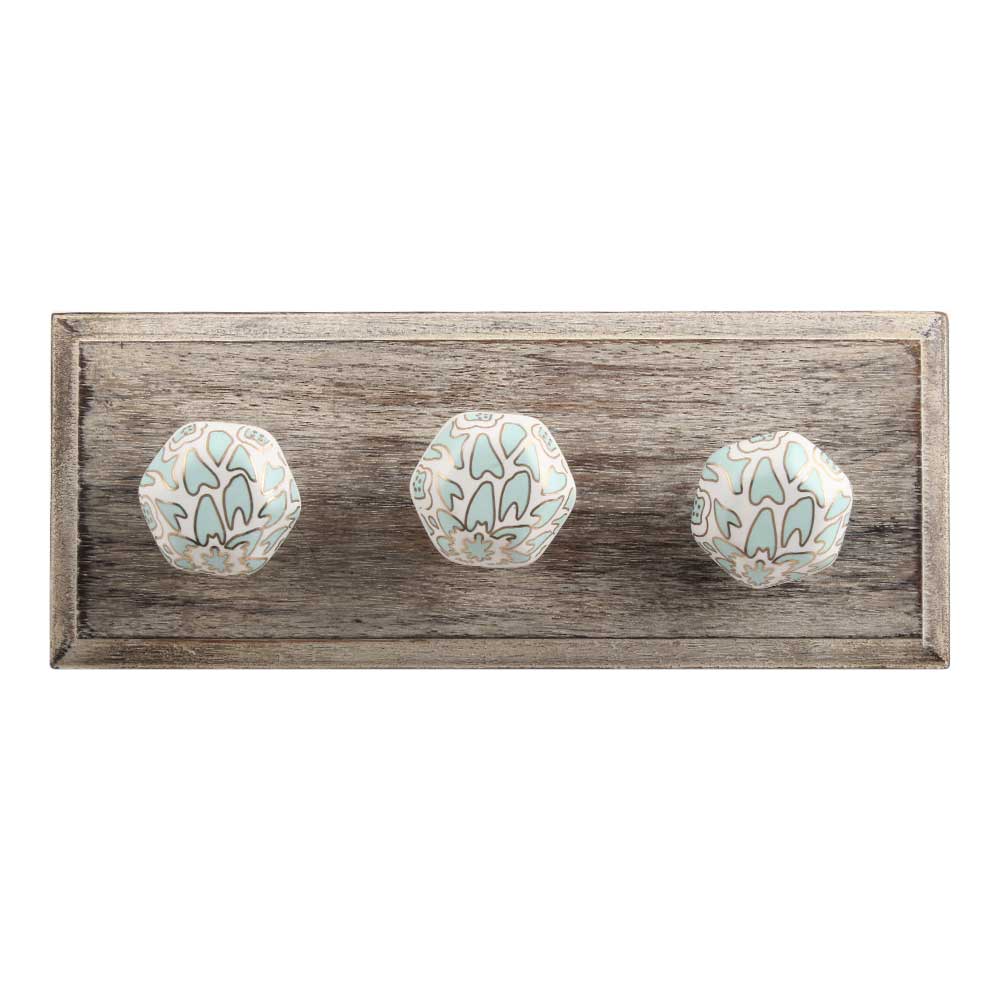 Sage Green Hexagon Ceramic Wooden Hook. A Perfect Complement to the Soft Tone of the Wood are these White Traditional Hat & Coat Hook Made of Genuine Porcelain and Brass. It can be use to Hang Jewellery, Leashes, Towels, Scarves, Light Weight Sweaters, Caps Etc.
