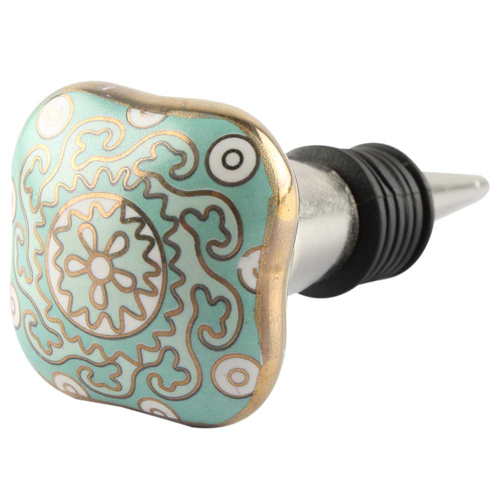 Sage Green Square Ceramic Wine Stopper Online. Zinc Alloy Wine Bottle Stopper with Attractive Jute Bag Packaging.