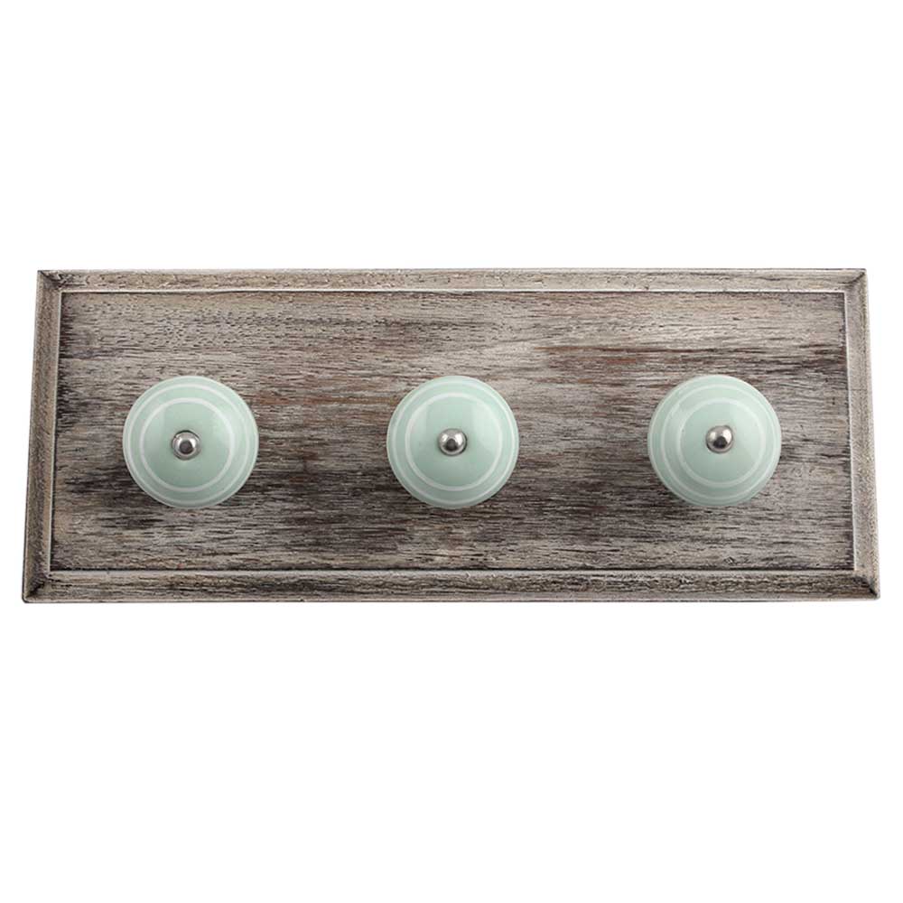 Sage Green White Strip Wooden Hooks . A Perfect Complement to the Soft Tone of the Wood are these White Traditional Hat Coat Hook Made of Genuine Porcelain and Brass. It can be use to Hang Jewellery, Leashes, Towels, Scarves, Light Weight Sweaters, Caps Etc.