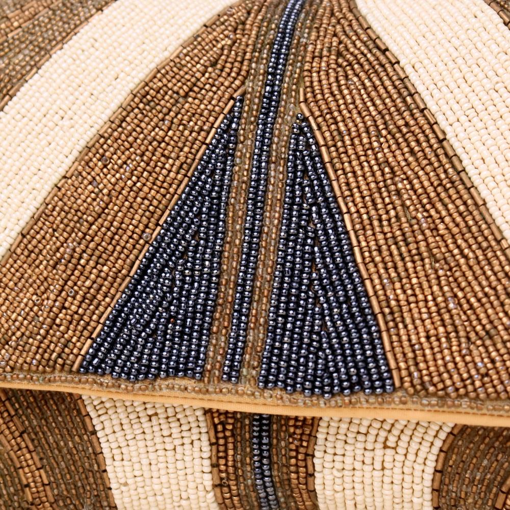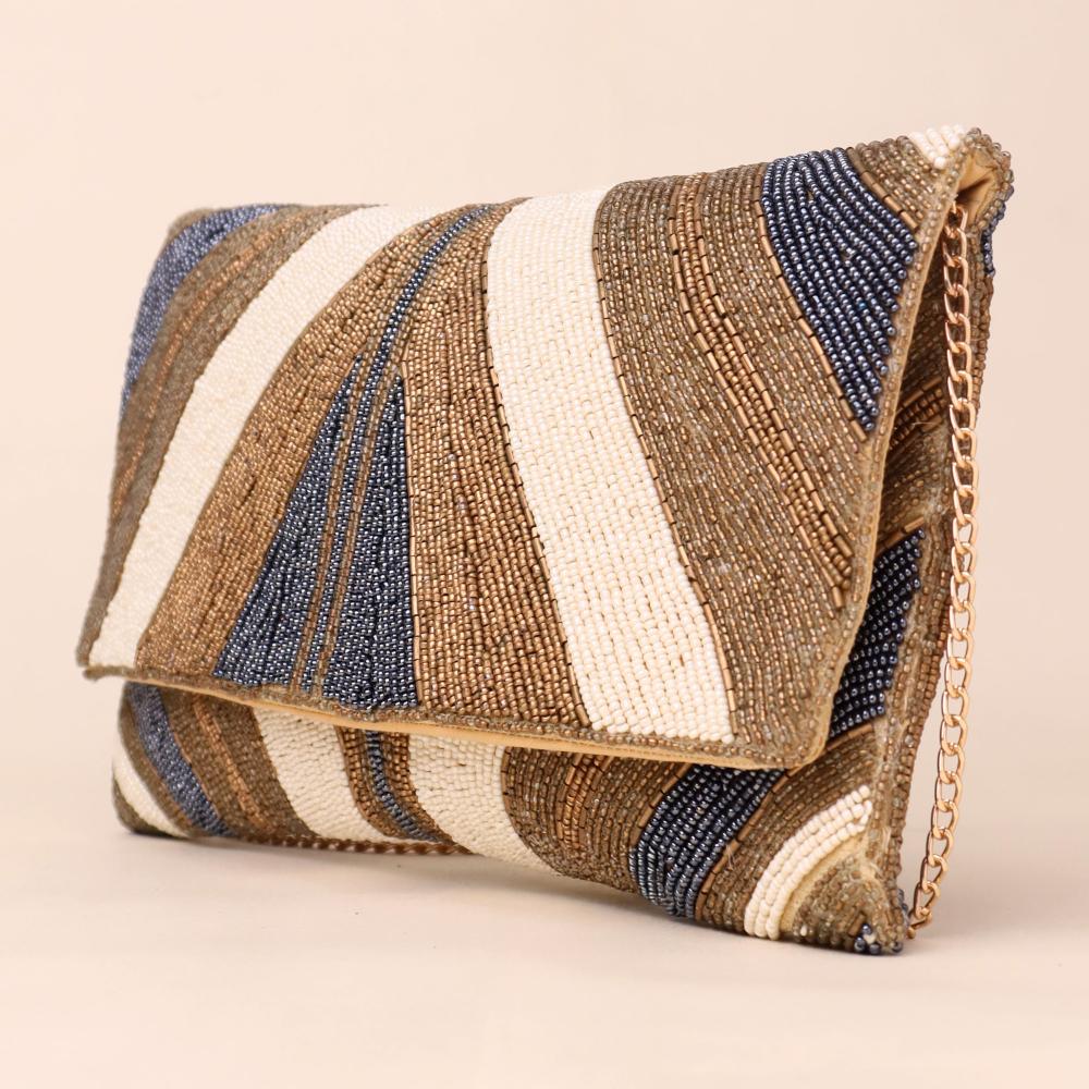 - Design Pattern: Geometric pattern with intricate beadwork across foldover flap