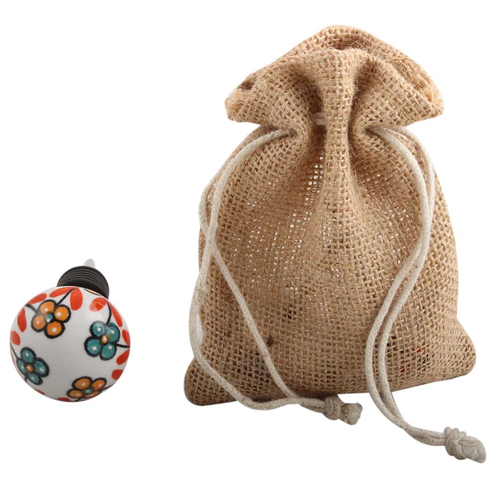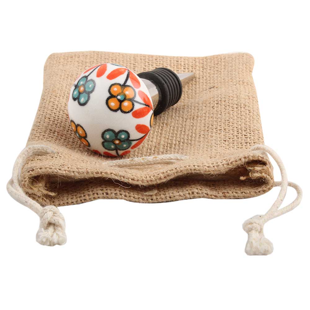 The Sea Green and Mustard Tiny Flower Wine Stopper is crafted from durable, high-quality ceramic, ensuring both longevity and a beautiful finish. The intricate hand-painted design showcases the beauty of the tiny flower in soft, earthy tones, giving it a vintage yet timeless feel. Its sturdy construction and tight, airtight seal make it both a functional and decorative piece.