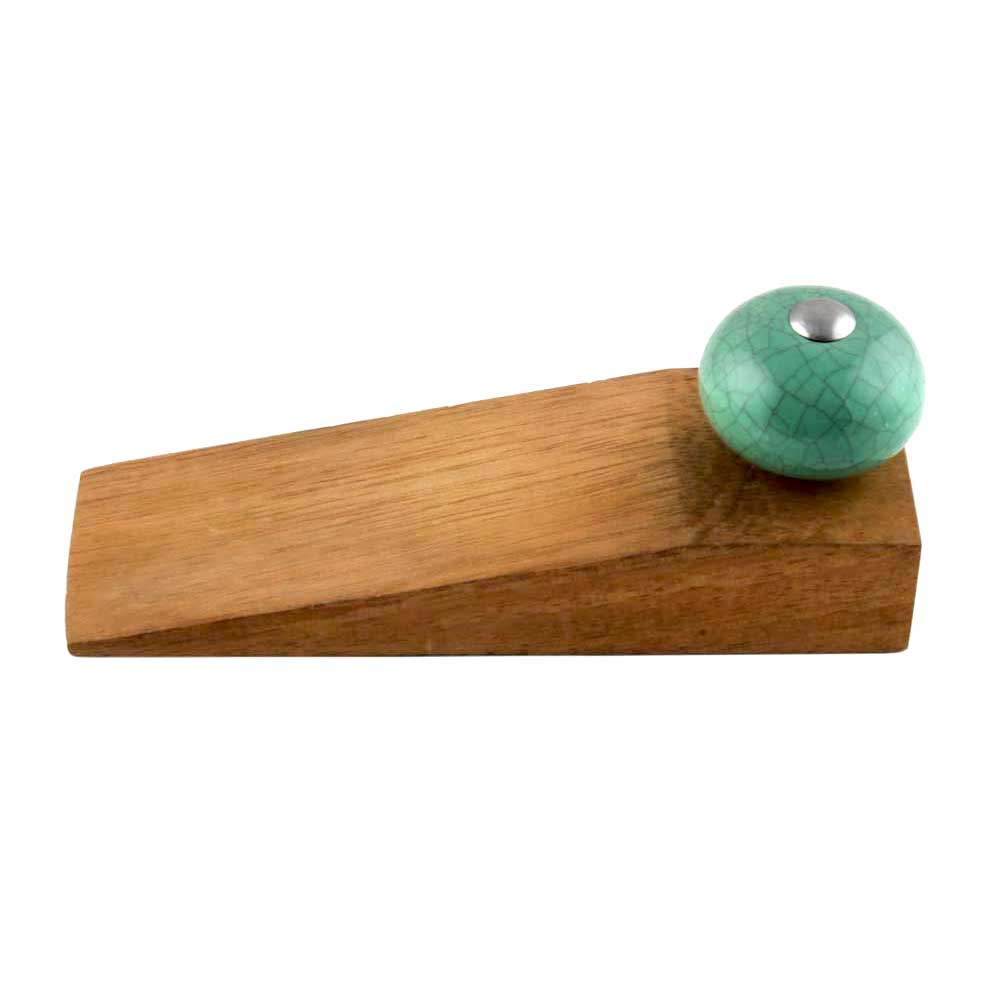 Handmade Ceramic and Wooden Door Stopper.Wooden Door Stopper with a Ceramic Knob to Carry it Easily. This Wooden Door Stopper has Glue Dots under it to Ensure that it does not Slip. It is Handmade by the Craftsmen of India and this Innovative Door Stopper won't Disappoint You.