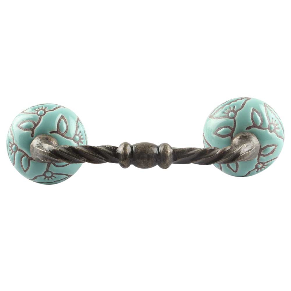 Sea Green Calla Lily Brown Etched Ceramic Cut Bridge Handle. Ideal for Drawer, Dresser, Cabinet, Wardrobe, Cupboard and Almirah etc.