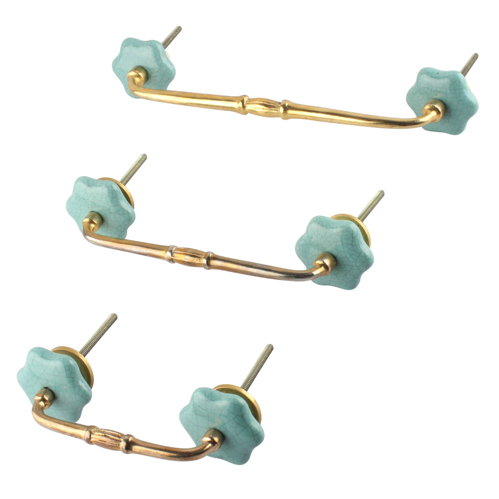 Sea Green Ceramic Bridge Dresser Handles. Ideal for Drawer, Dresser, Cabinet, Wardrobe, Cupboard and Almirah.