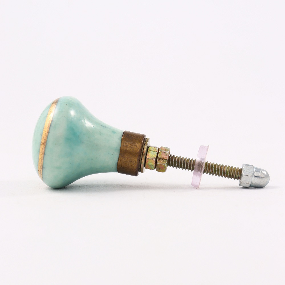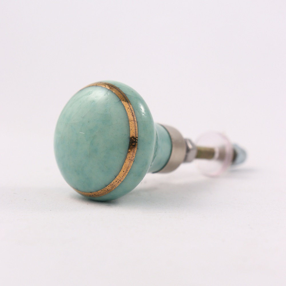 Sea Green Crackle Ceramic Cabinet Knob With Gold Work. Ideal for Drawer, Dresser, Cabinet, Wardrobe, Cupboard and Almirah.