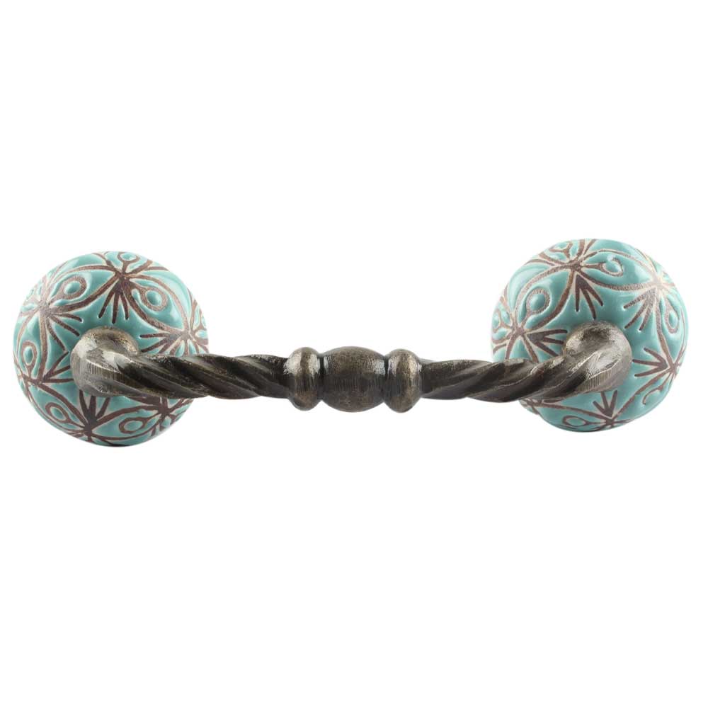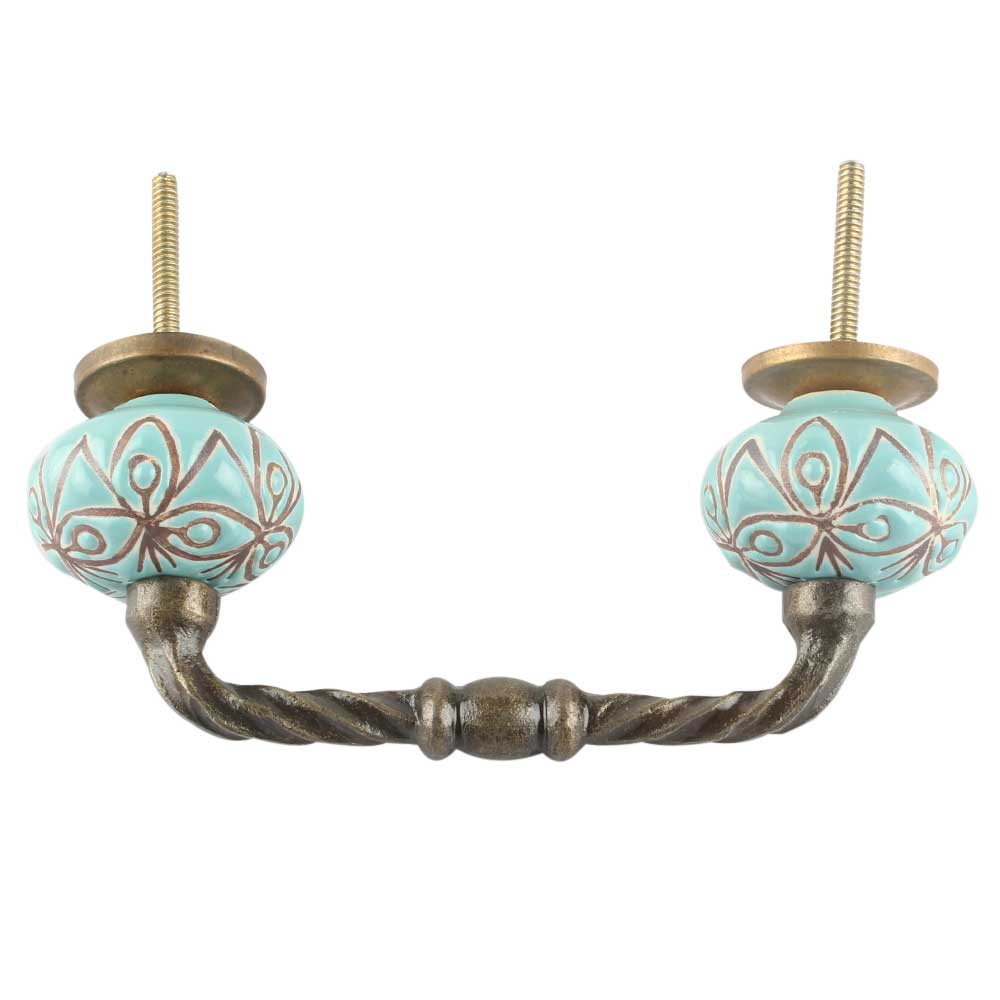 Sea Green Etched Ceramic Cut Bridge Handle. Ideal for Drawer, Dresser, Cabinet, Wardrobe, Cupboard and Almirah etc.