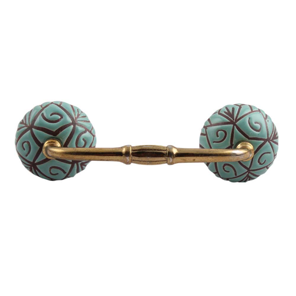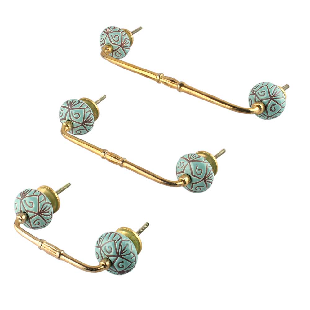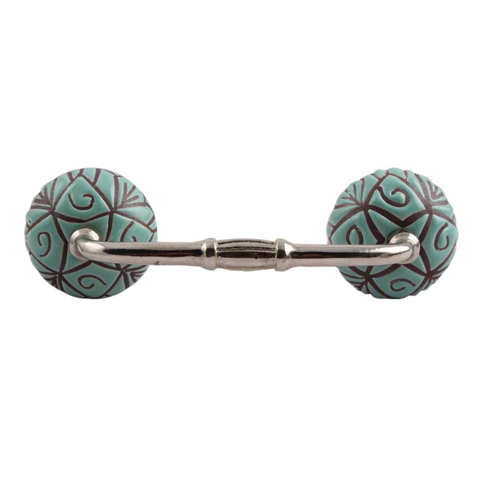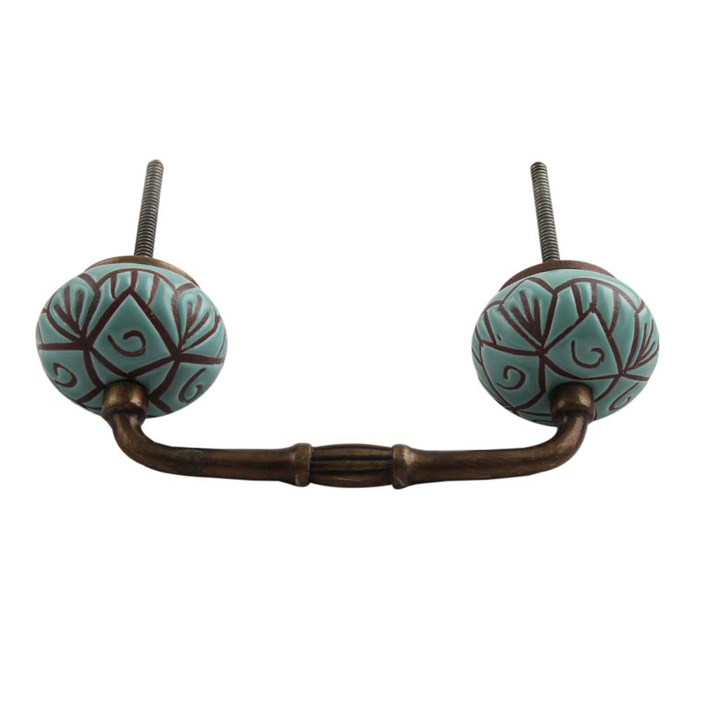 Sea Green Etched Ceramic Floral Bridge Handle. Ideal for Drawer, Dresser, Cabinet, Wardrobe, Cupboard and Almirah.