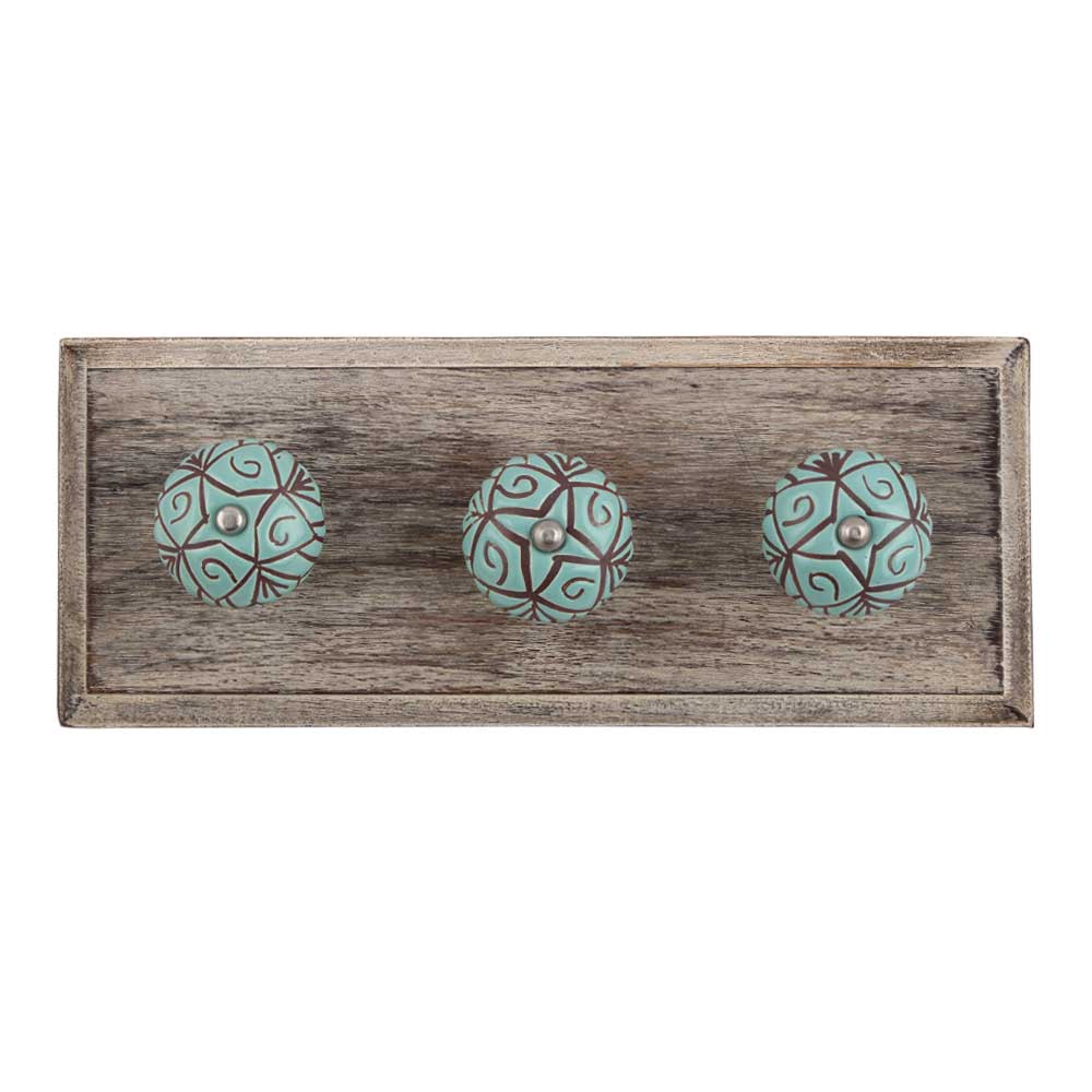 Sea Green Etched Ceramic Floral Wooden Hook. A Perfect Complement to the Soft Tone of the Wood are these White Traditional Hat & Coat Hook Made of Genuine Porcelain and Brass. It can be use to Hang Jewellery, Leashes, Towels, Scarves, Light Weight Sweaters, Caps Etc.