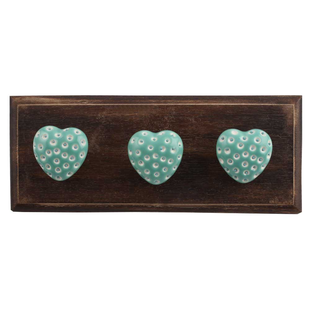 Sea Green Heart Etched Ceramic Wooden Hook. A Perfect Complement to the Soft Tone of the Wood are these White Traditional Hat Coat Hook Made of Genuine Porcelain and Brass. It can be use to Hang Jewellery, Leashes, Towels, Scarves, Light Weight Sweaters, Caps Etc.