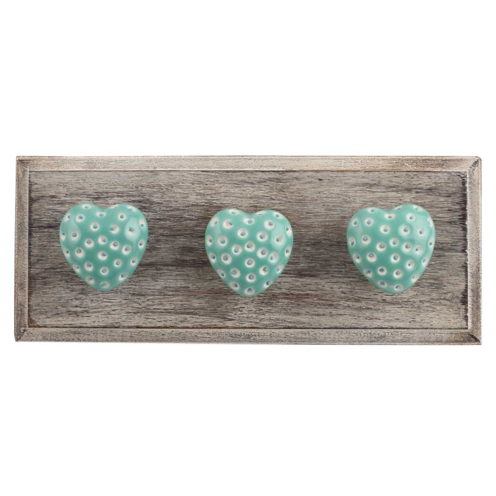 Sea Green Heart Etched Ceramic Wooden Hook. A Perfect Complement to the Soft Tone of the Wood are these White Traditional Hat Coat Hook Made of Genuine Porcelain and Brass. It can be use to Hang Jewellery, Leashes, Towels, Scarves, Light Weight Sweaters, Caps Etc.