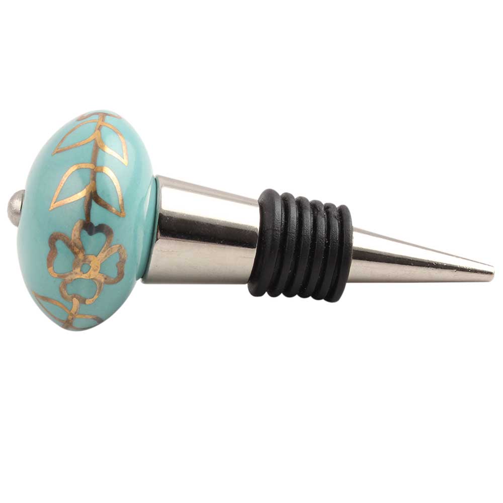 Sea Green Leaf Ceramic Wine Stopper.zinc alloy wine bottle stopper with attractive Jute Bag Packaging.