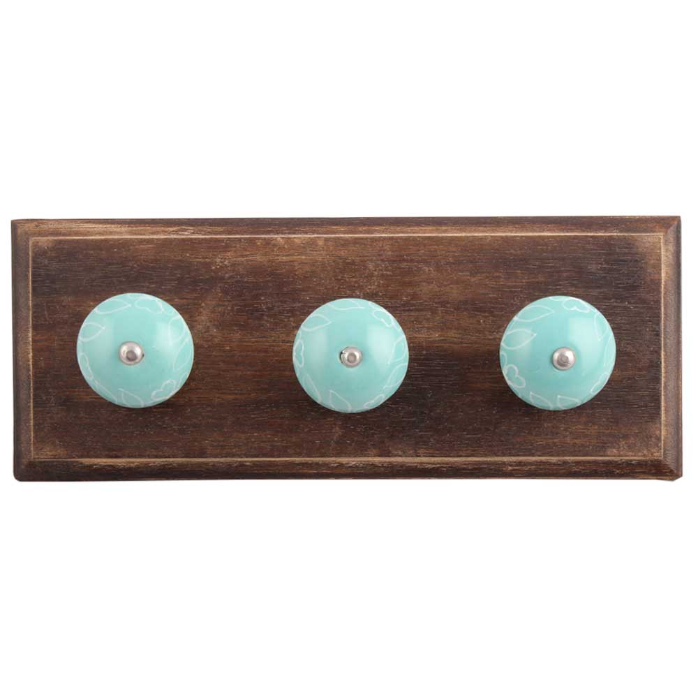 Sea Green Leaf Ceramic Wooden Hook. A Perfect Complement to the Soft Tone of the Wood are these White Traditional Hat & Coat Hook Made of Genuine Porcelain and Brass. It can be use to Hang Jewellery, Leashes, Towels, Scarves, Light Weight Sweaters, Caps Etc.