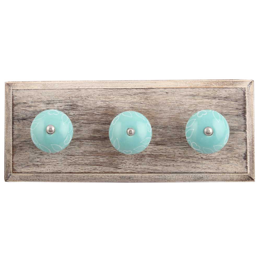 Sea Green Leaf Ceramic Wooden Hook. A Perfect Complement to the Soft Tone of the Wood are these White Traditional Hat & Coat Hook Made of Genuine Porcelain and Brass. It can be use to Hang Jewellery, Leashes, Towels, Scarves, Light Weight Sweaters, Caps Etc.