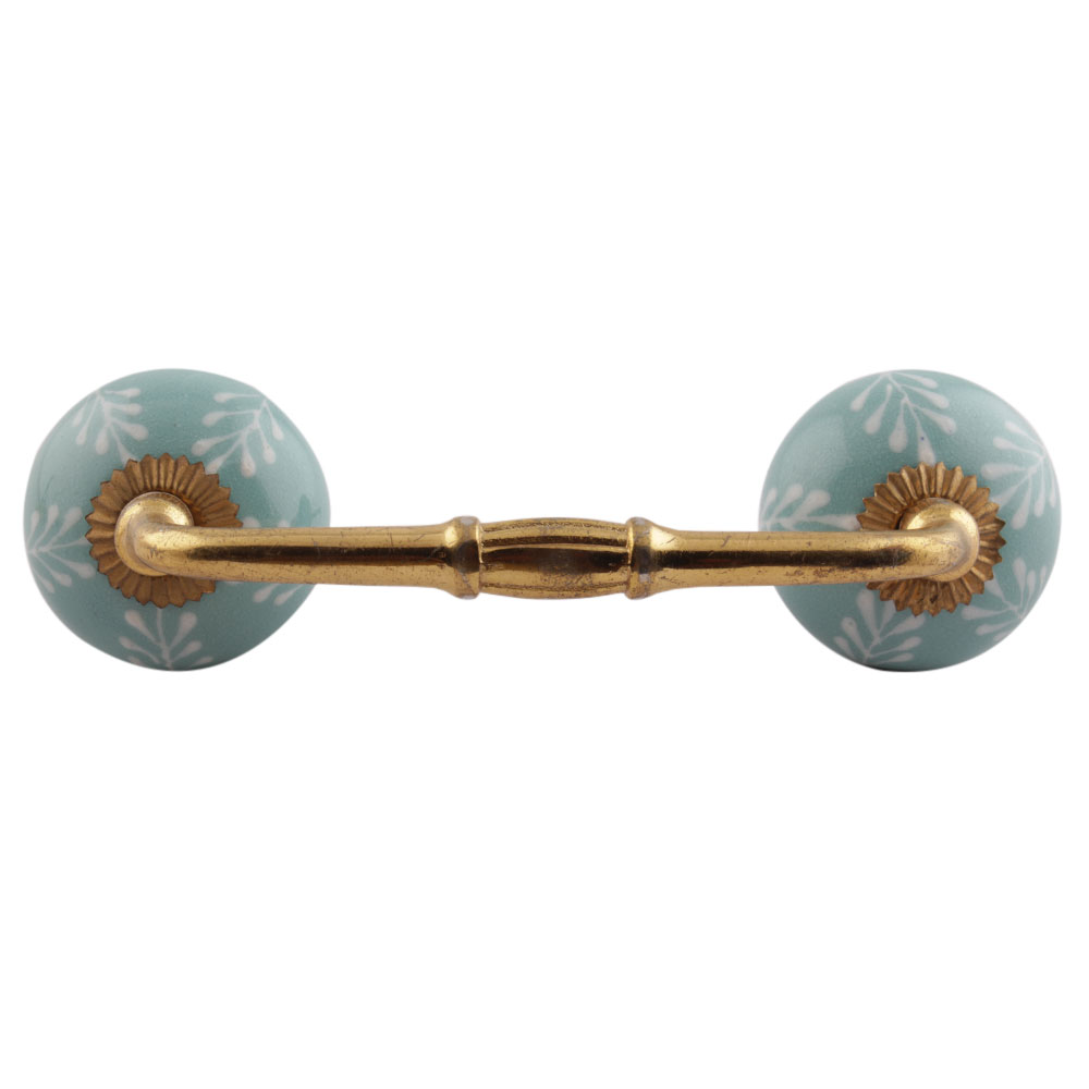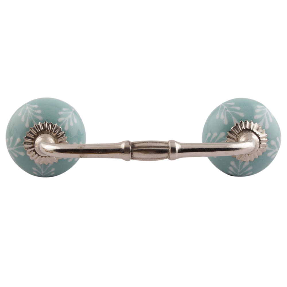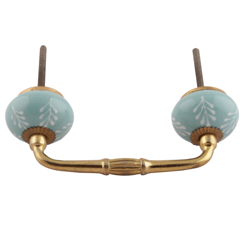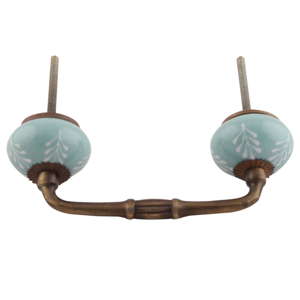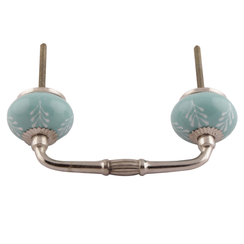 Sea Green Leaf Floral Ceramic Bridge Handles. Ideal for Drawer, Dresser, Cabinet, Wardrobe, Cupboard and Almirah etc.