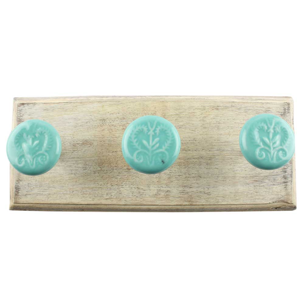 The hand-painted sea green leaf and flower pattern adds a soft pop of color and organic texture, making this hook a beautiful accent piece.