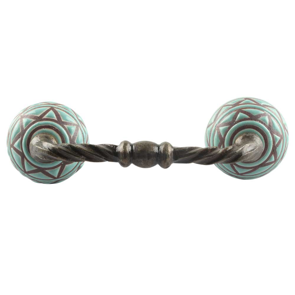 Sea Green Pattern Etched Ceramic Cut Bridge Handle. Ideal for Drawer, Dresser, Cabinet, Wardrobe, Cupboard and Almirah etc.