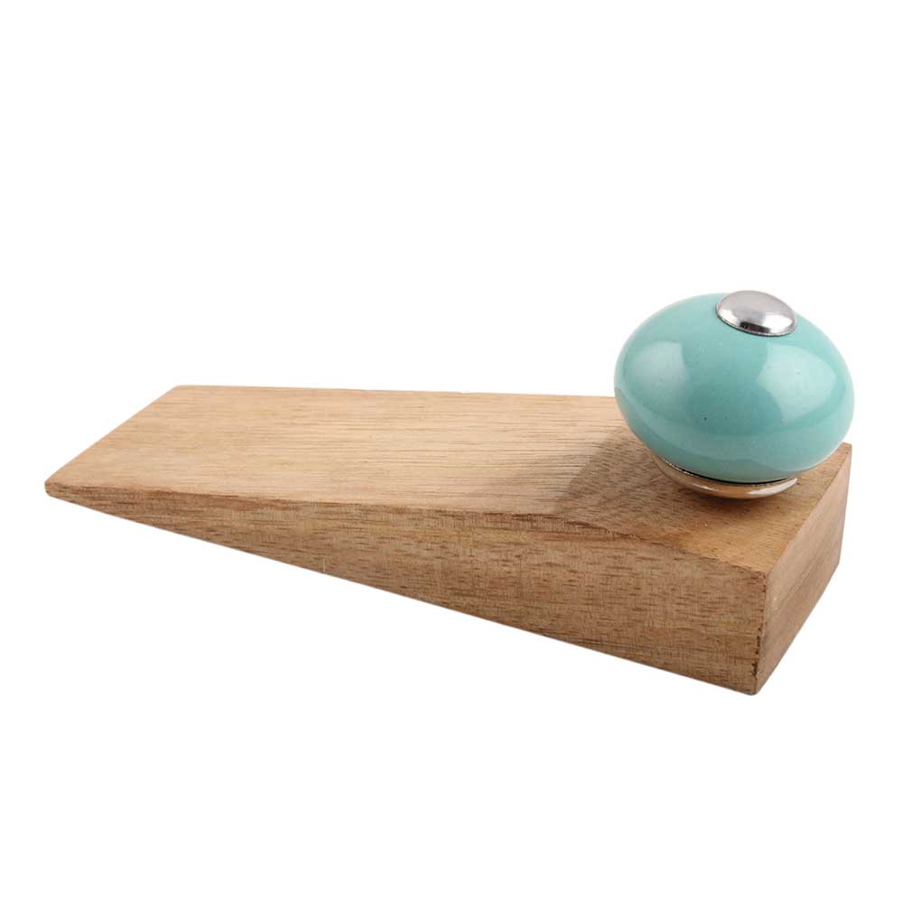 Handmade Ceramic and Wooden Door Stopper.Wooden Door Stopper with a Ceramic Knob to Carry it Easily. This Wooden Door Stopper has Glue Dots under it to Ensure that it does not Slip. It is Handmade by the Craftsmen of India and this Innovative Door Stopper won't Disappoint You.