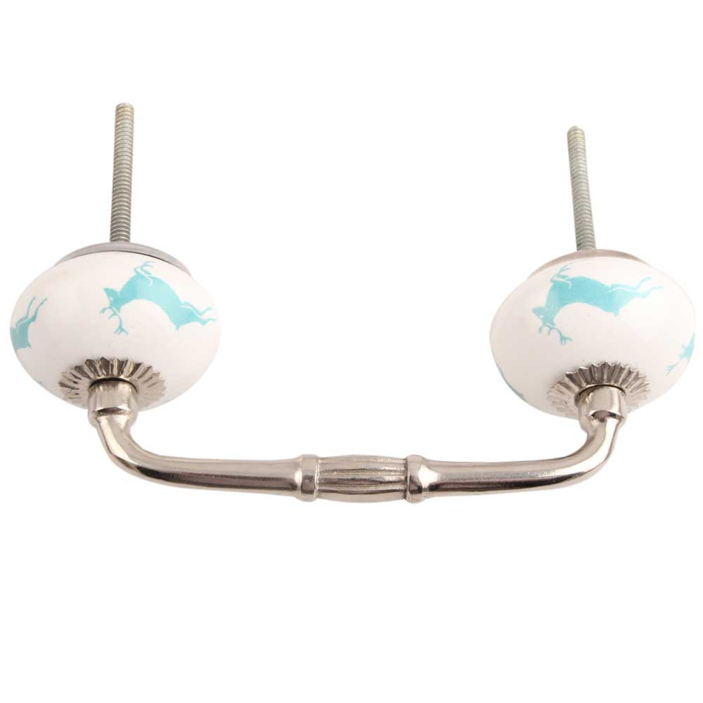 Sea Green Running Rein Deer Pattern Ceramic Bridge Handle. Ideal for Drawer, Dresser, Cabinet, Wardrobe, Cupboard and Almirah.