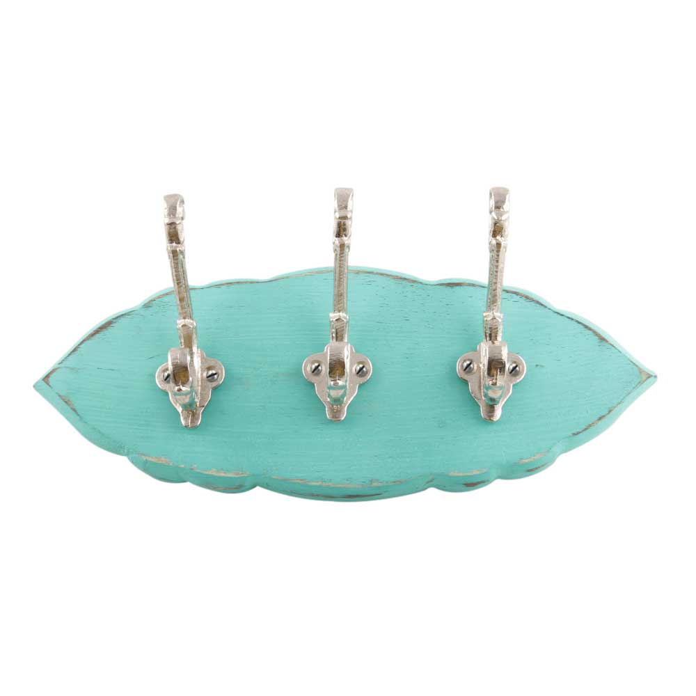 Sea Green And Silver Small Wall Wooden Iron Hooks. A Perfect Complement to the Soft Tone of the Wood are these White Traditional Hat & Coat Hook Made of Genuine Porcelain and Brass. It can be use to Hang Jewellery, Leashes, Towels, Scarves, Light Weight Sweaters, Caps Etc.