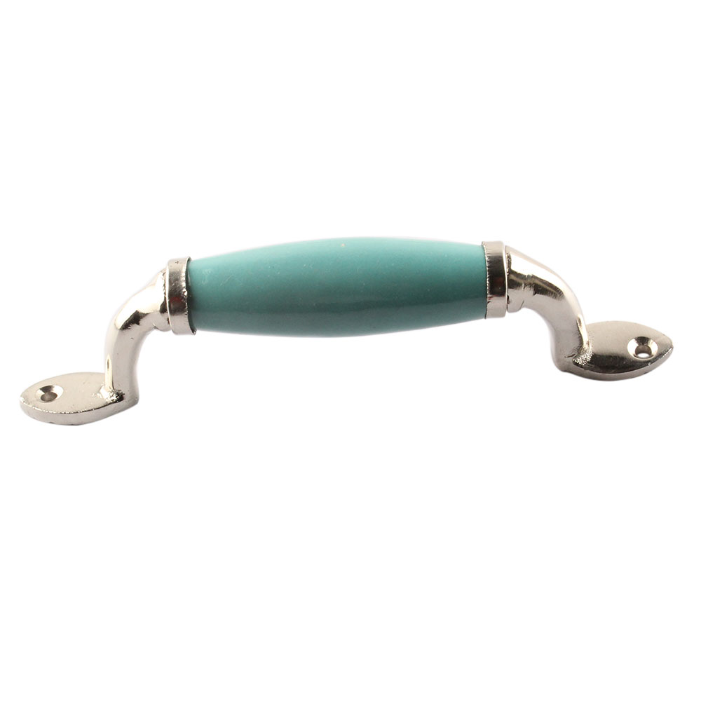 Sea Green Small Ceramic Silver Door Handles. Ideal for Drawer, Dresser, Cabinet, Wardrobe, Cupboard and Almirah.