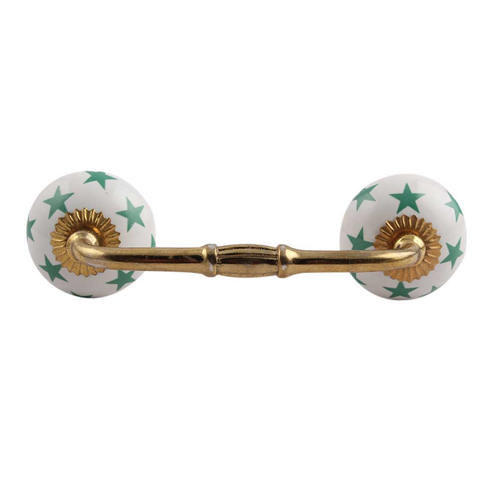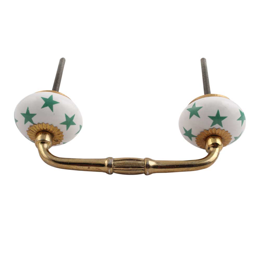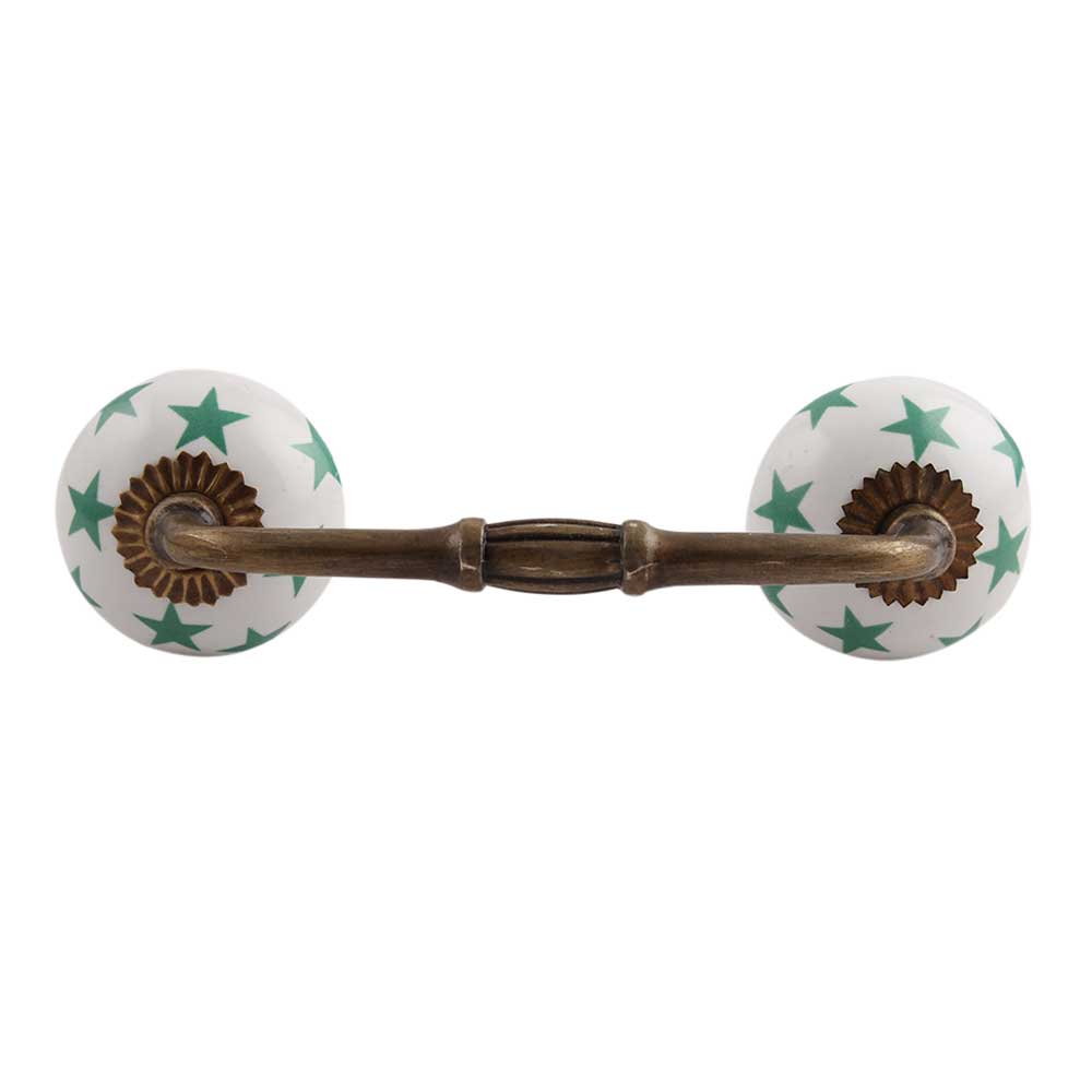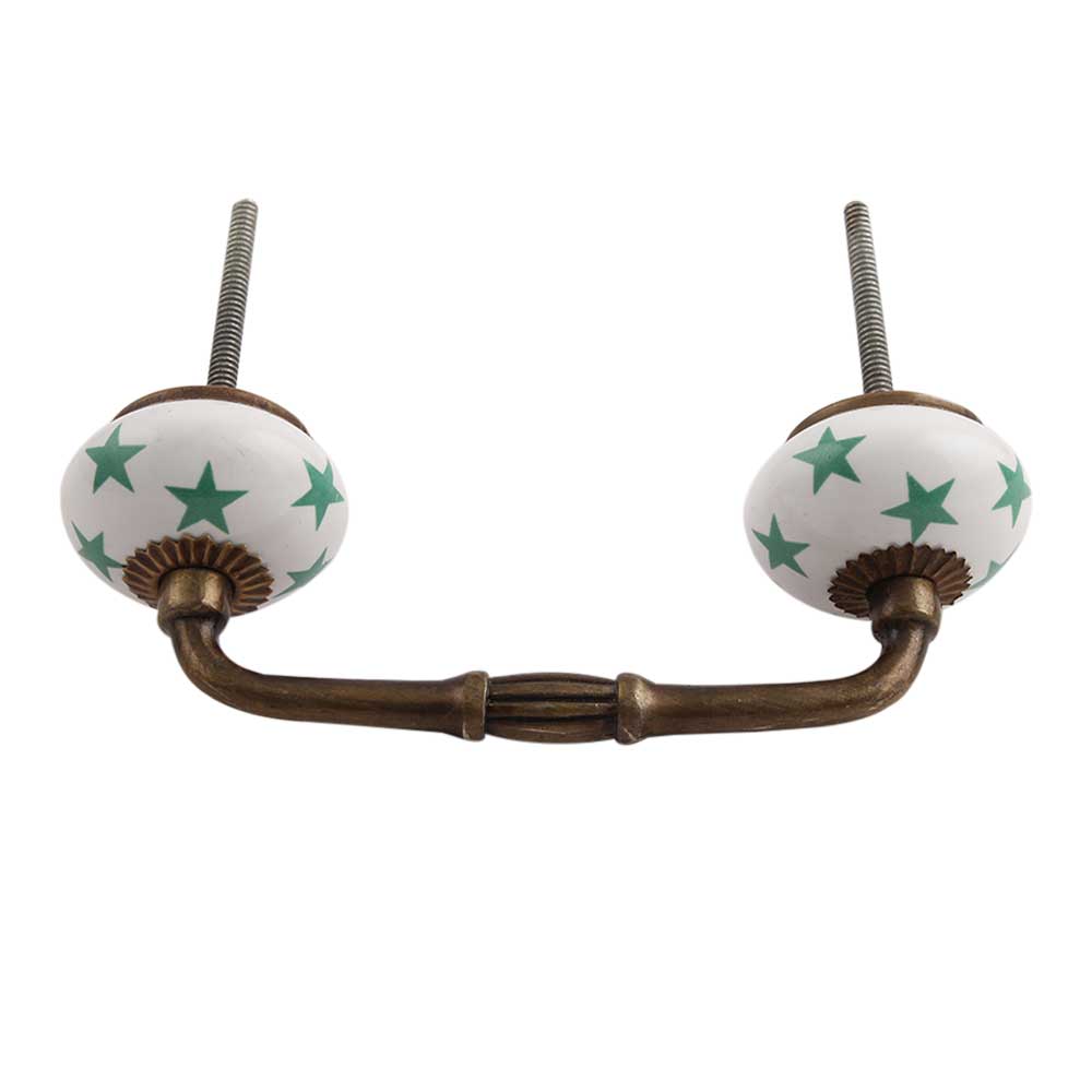 Sea Green Star Ceramic Bridge Handle. Ideal for Drawer, Dresser, Cabinet, Wardrobe, Cupboard and Almirah.