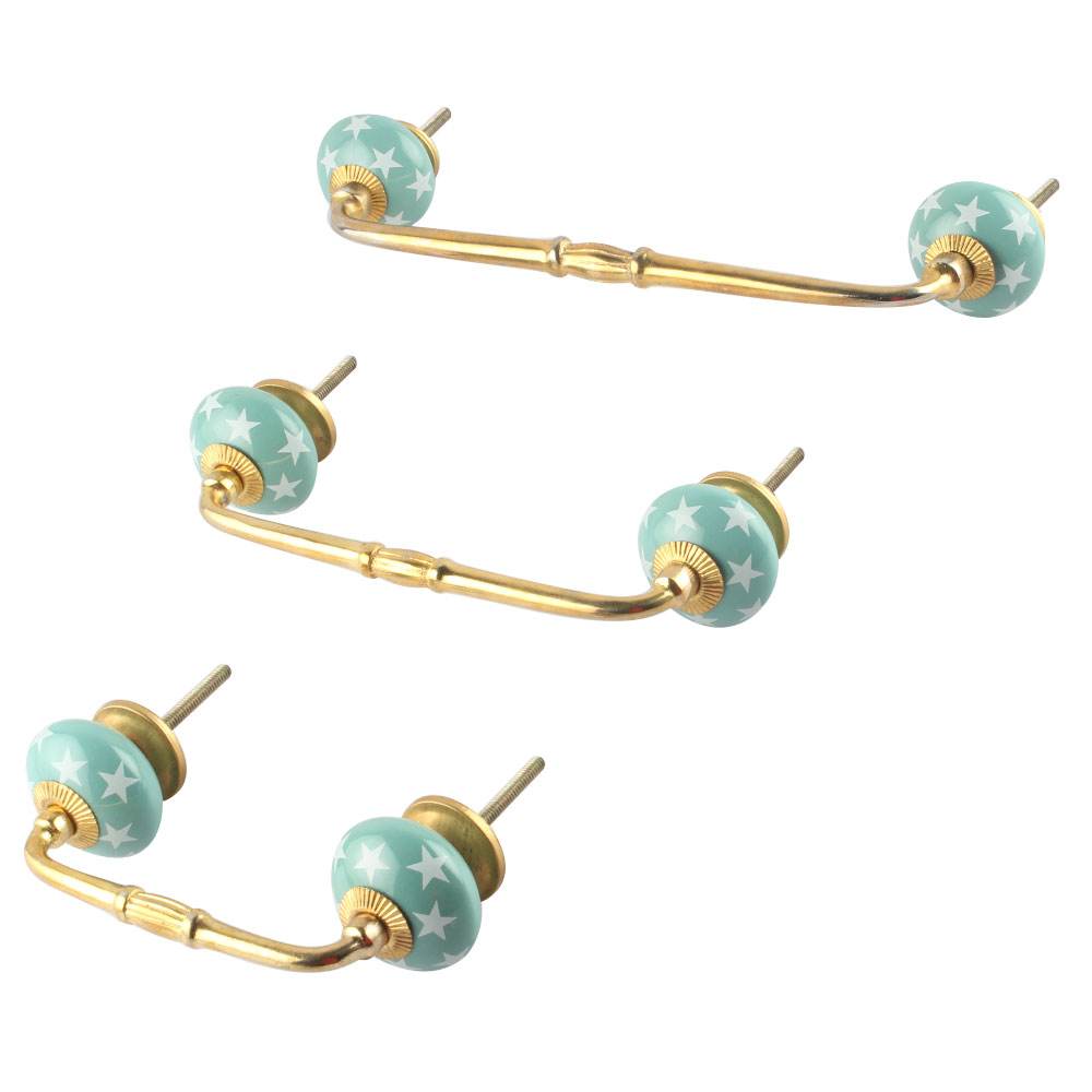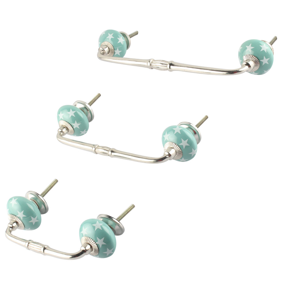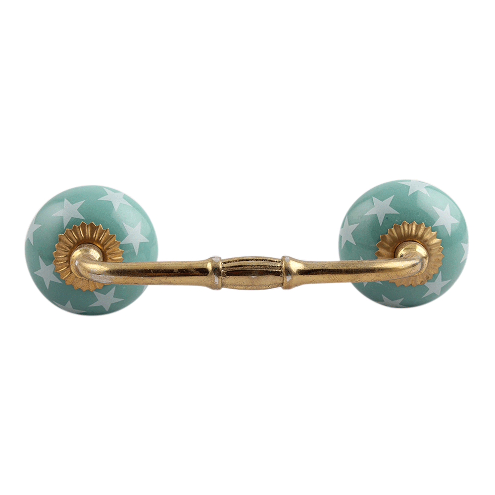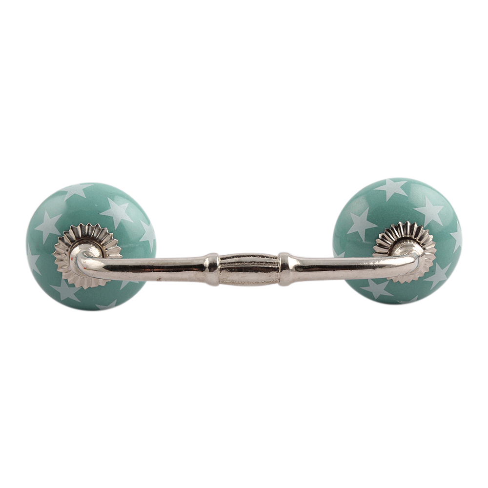 Sea Green Star Ceramic Bridge Handle. Ideal for Drawer, Dresser, Cabinet, Wardrobe, Cupboard and Almirah.