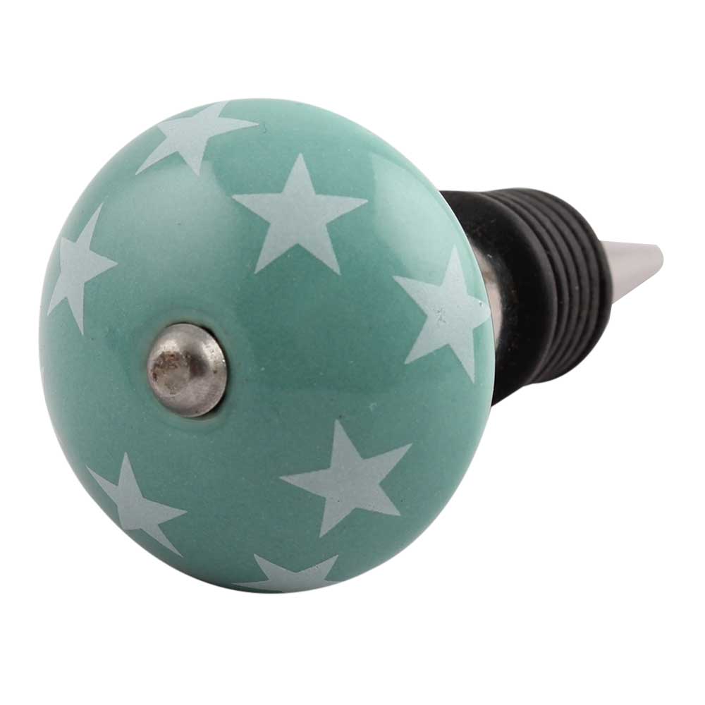 Sea Green Star Ceramic Wine Stopper.zinc alloy wine bottle stopper with attractive Jute Bag Packaging.