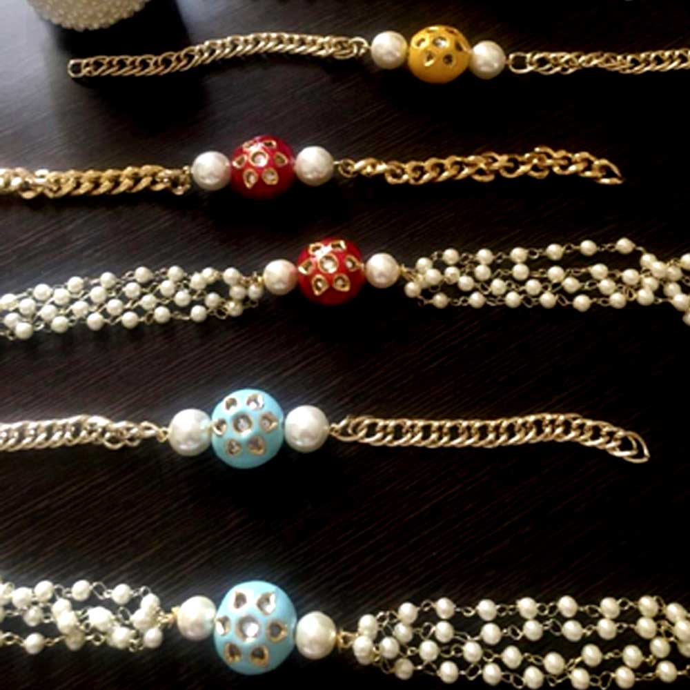Set of rakhi and lumba with jadau work.
