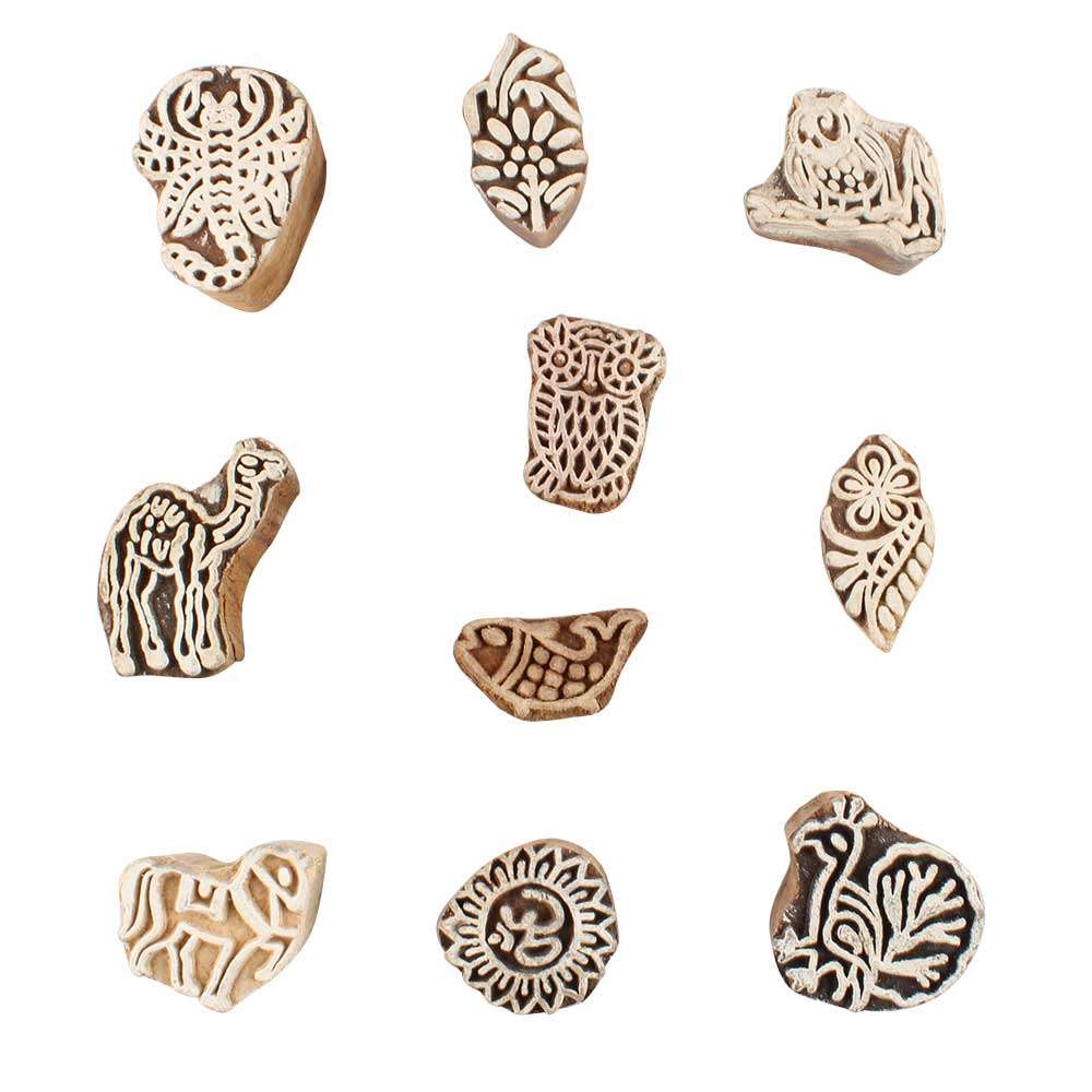 Set of 10 Piece New Mix Wooden Printing Block. Ideal for use on Fabric, Paper, Canvas, etc. These Blocks can be use to Print with Oil Colors, Fabric Colors, Water Colors, Acrylic Colors and Vegetable Colors.