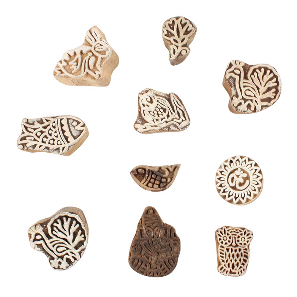 Set of 10 Piece New Mix Wooden Printing Block. Ideal for use on Fabric, Paper, Canvas, etc. These Blocks can be use to Print with Oil Colors, Fabric Colors, Water Colors, Acrylic Colors and Vegetable Colors.