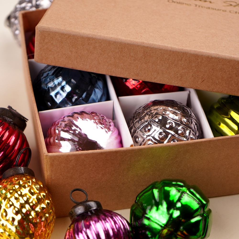 The glass construction of these ornaments gives them a timeless, vintage appeal. They’re perfect for adding a traditional touch to your Christmas tree or mixing with other modern decorations. The set’s mix of colors creates a harmonious and festive display that will be a focal point of your holiday celebrations.