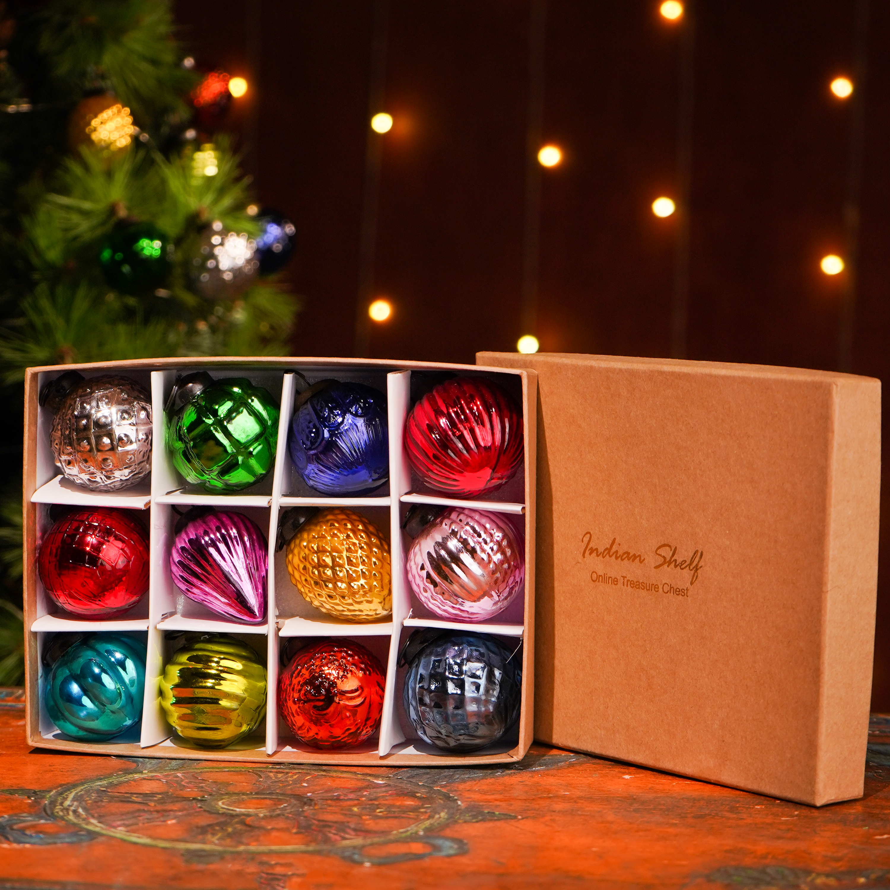 These multicolor glass ornaments are not only eye-catching but also add a reflective quality to your tree. Their glossy finish creates a warm glow when lit, bringing an extra layer of sparkle to your decorations. The set of 12 ensures your tree will be beautifully adorned, no matter its size.