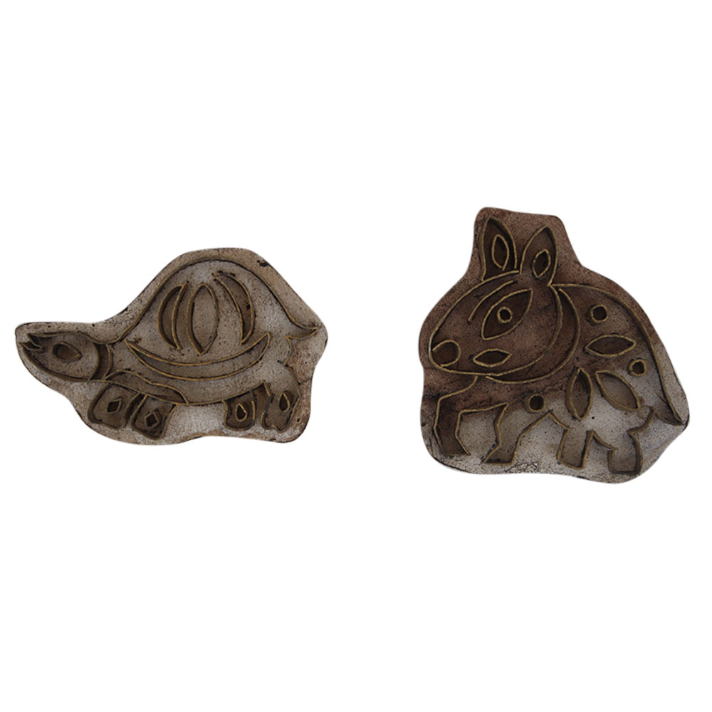 Set of 2 Piece Animal Super Fine Wooden Printing Block. Ideal for Using on Fabric, Paper, Canvas, Leather, etc. These Blocks can be use to Print with Oil Colors, Fabric Colors, Water Colors, Acrylic Colors and Vegetable Colors.