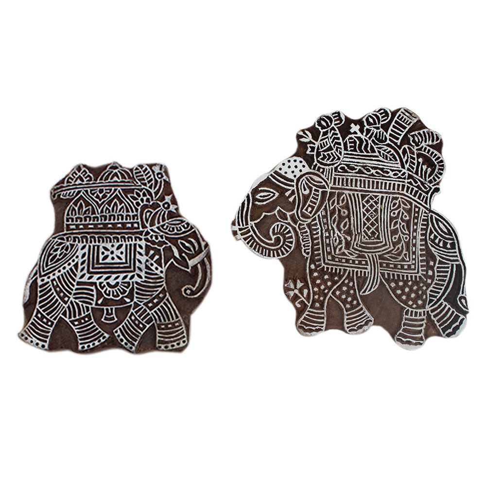 Set of 2 Piece New Elephant Wooden Printing Block. Ideal for Using on Fabric, Paper, Canvas, etc. These Blocks can be use to Print with Oil Colors, Fabric Colors, Water Colors, Acrylic Colors and Vegetable Colors.