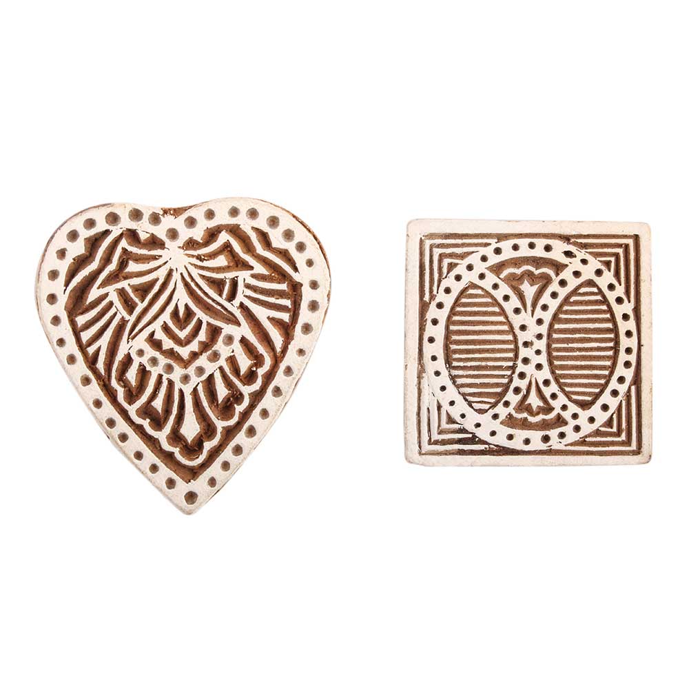 Set of 2 Piece New Mix Wooden Printing Block. Ideal for Using on Fabric, Paper, Canvas, etc. These Blocks can be use to Print with Oil Colors, Fabric Colors, Water Colors, Acrylic Colors and Vegetable Colors.