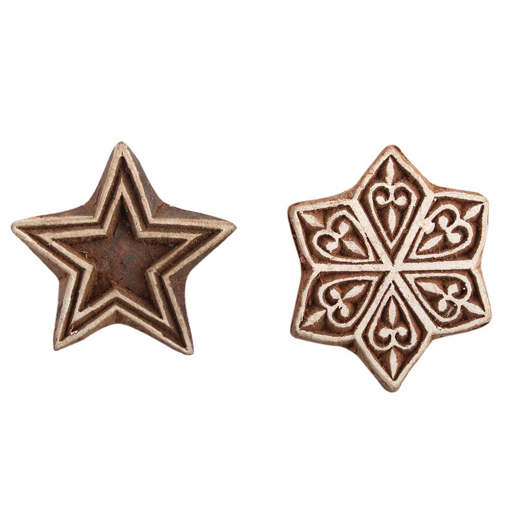 Set of 2 Piece New Mix Wooden Printing Block. Ideal for use on Fabric, Paper, Canvas, etc. These Blocks can be use to Print with Oil Colors, Fabric Colors, Water Colors, Acrylic Colors and Vegetable Colors.