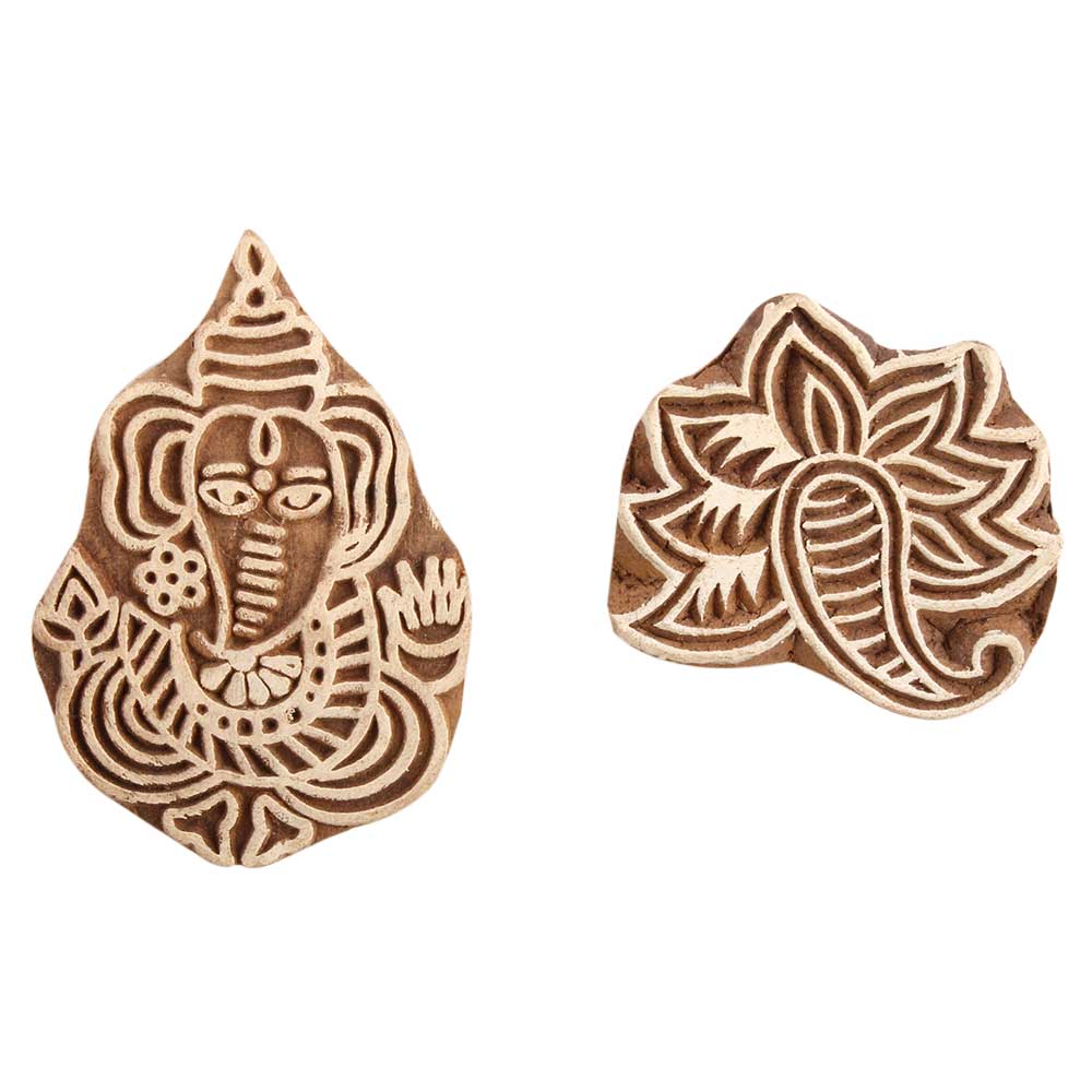 Set of 2 Piece New Mix Wooden Printing Block. Ideal for use on Fabric, Paper, Canvas, etc. These Blocks can be use to Print with Oil Colors, Fabric Colors, Water Colors, Acrylic Colors and Vegetable Colors.
