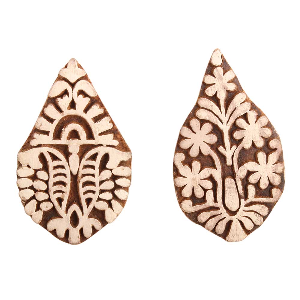 Set of 2 Piece New Mix Wooden Printing Block. Ideal for use on Fabric, Paper, Canvas, etc. These Blocks can be use to Print with Oil Colors, Fabric Colors, Water Colors, Acrylic Colors and Vegetable Colors.