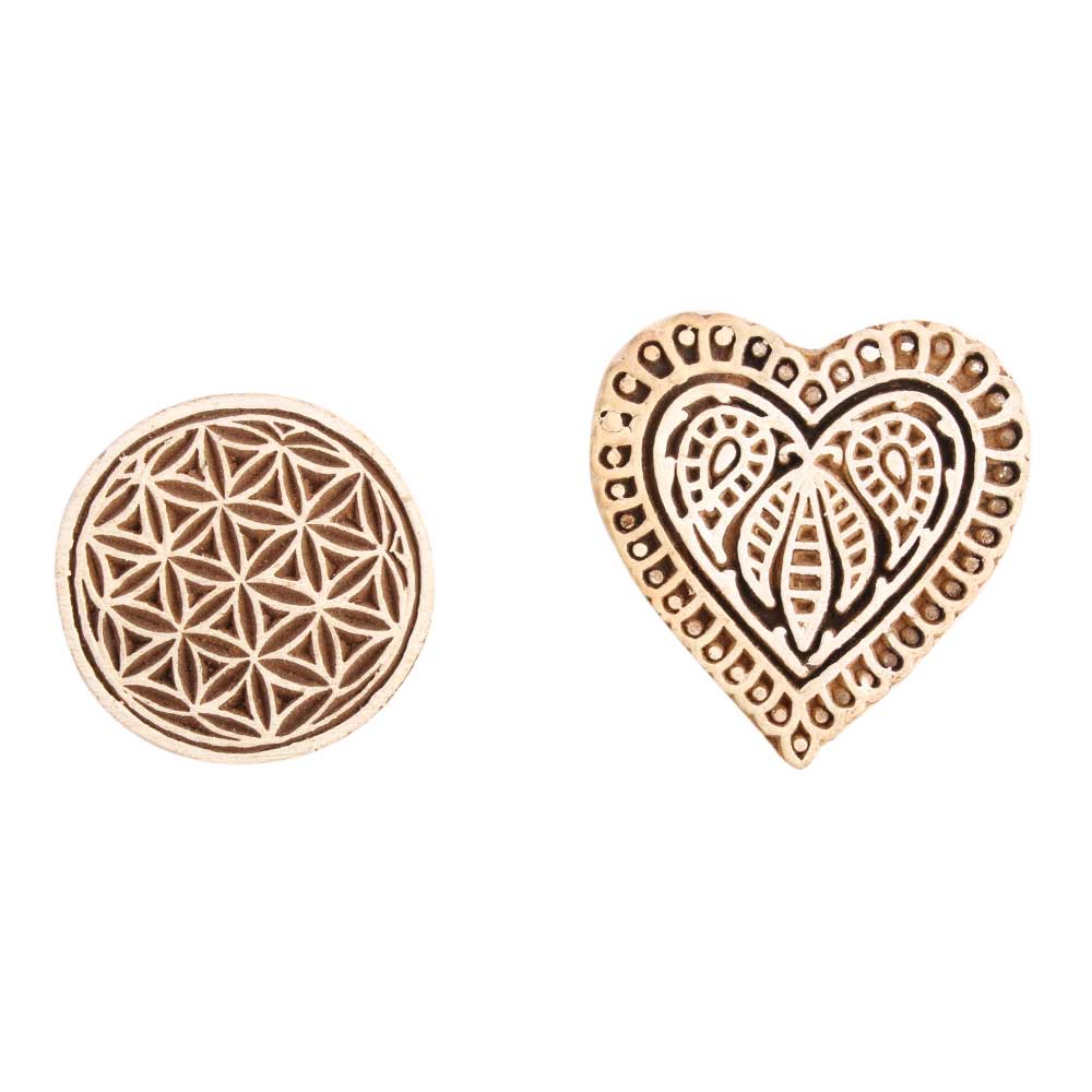 Set of 2 Piece New Mix Wooden Printing Block. Ideal for use on Fabric, Paper, Canvas, etc. These Blocks can be use to Print with Oil Colors, Fabric Colors, Water Colors, Acrylic Colors and Vegetable Colors.
