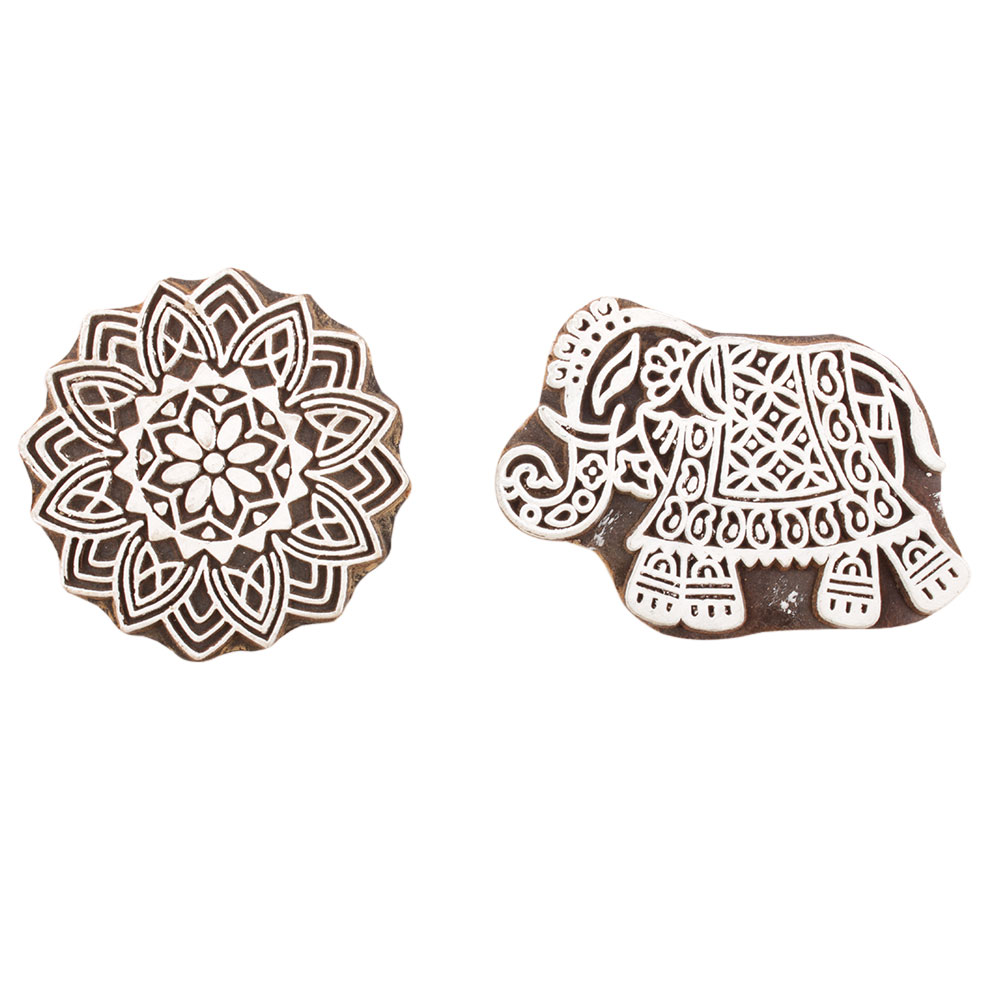 Set of 2 Piece New Mix Wooden Printing Block. Ideal for use on Fabric, Paper, Canvas, etc. These Blocks can be use to Print with Oil Colors, Fabric Colors, Water Colors, Acrylic Colors and Vegetable Colors.