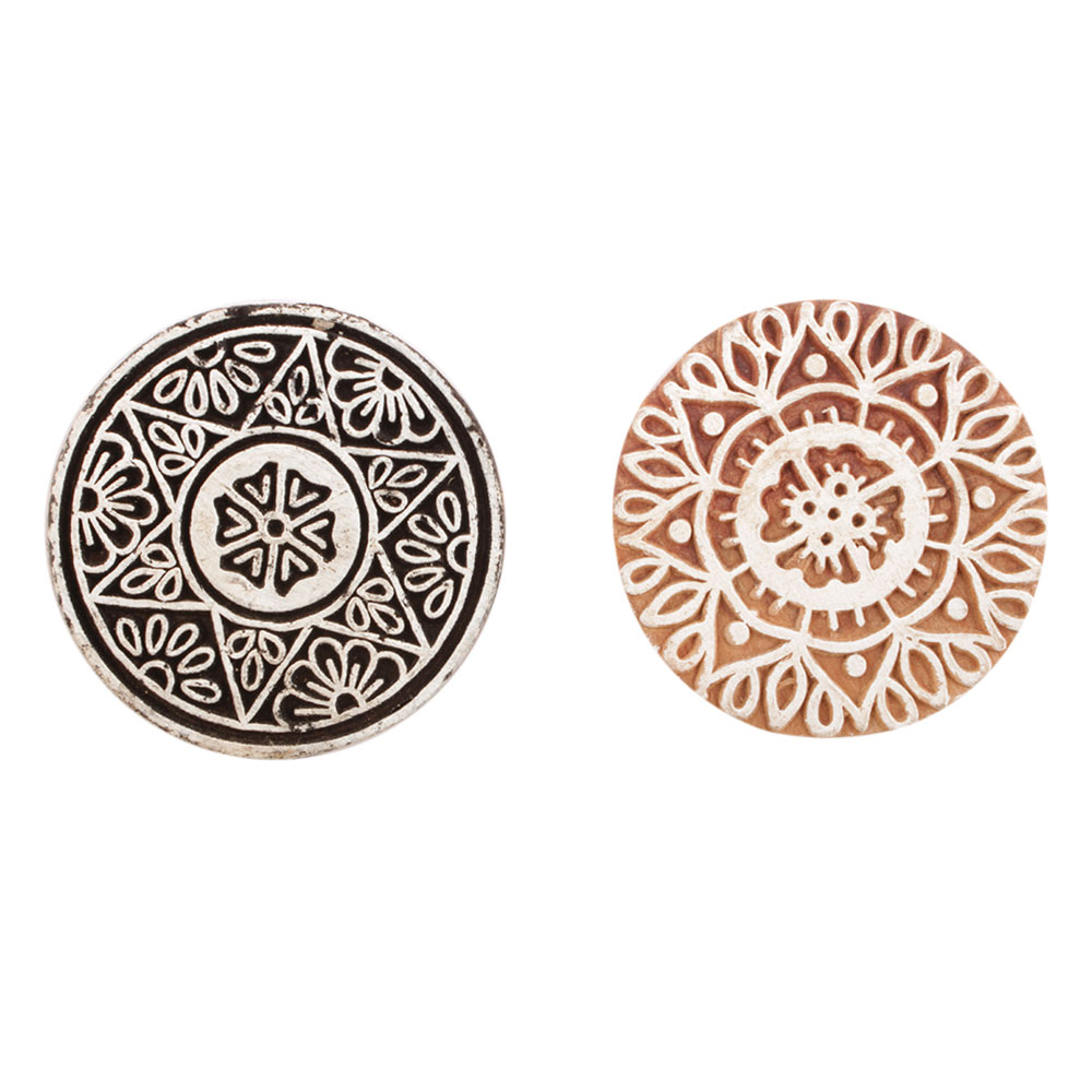 Set of 2 Piece New Mix Wooden Printing Block. Ideal for use on Fabric, Paper, Canvas, etc. These Blocks can be use to Print with Oil Colors, Fabric Colors, Water Colors, Acrylic Colors and Vegetable Colors.
