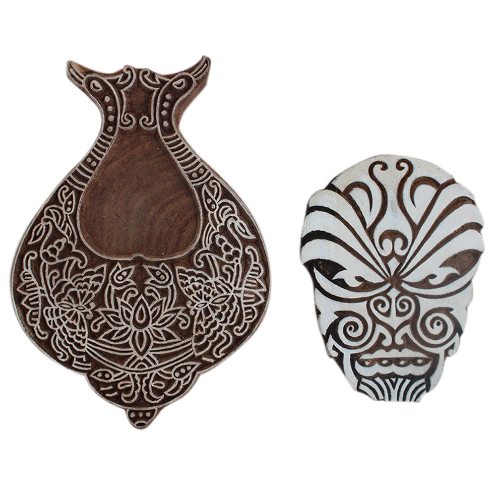 Set of 2 Piece New Wooden Printing Block. Ideal for Using on Fabric, Paper, Canvas, etc. These Blocks can be use to Print with Oil Colors, Fabric Colors, Water Colors, Acrylic Colors and Vegetable Colors.