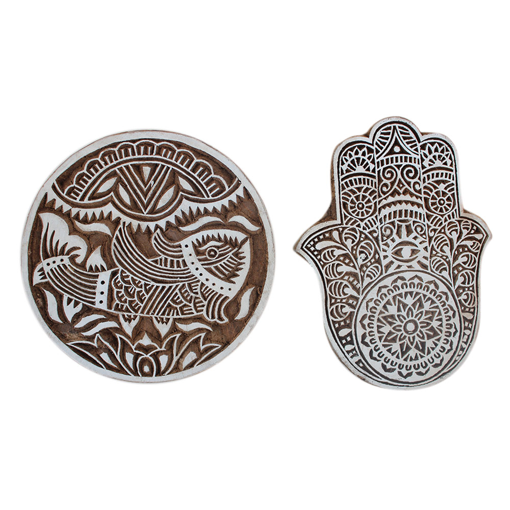 Set of 2 Piece New Wooden Printing Block. Ideal for Using on Fabric, Paper, Canvas, etc. These Blocks can be use to Print with Oil Colors, Fabric Colors, Water Colors, Acrylic Colors and Vegetable Colors.